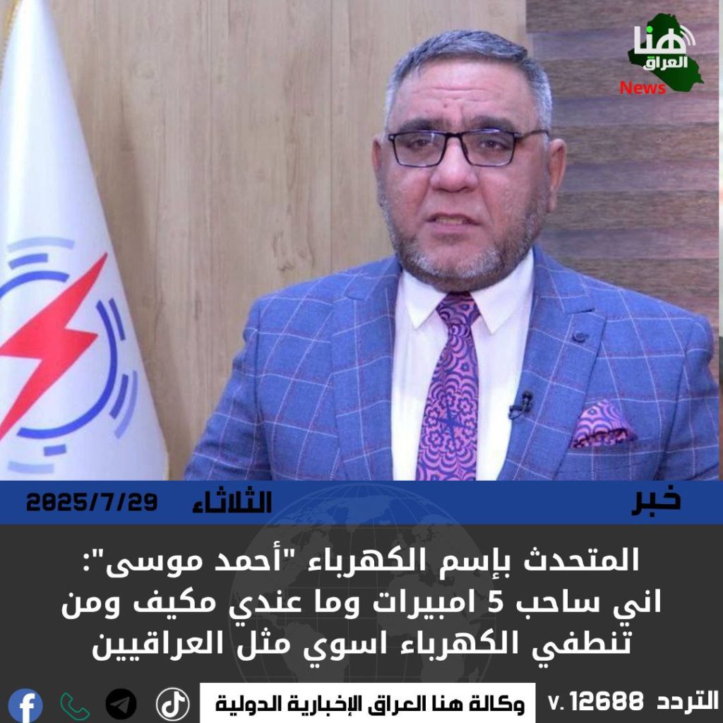 الرئيسية/محلي/المتحدث بإسم الكهرباء “أحمد موسى”: اني ساحب 5 امبيرات وما عندي مكيف ومن تنطفي الكهرباء اسوي مثل العراقيين محلي المتحدث بإسم الكهرباء “أحمد موسى”: اني ساحب 5 امبيرات وما عندي مكيف ومن تنطفي الكهرباء اسوي مثل العراقيين شاركها فيسبوك X لينكدإن Tumblr بينتيريست Reddit VKontakte Odnoklassniki Pocket مشاركة عبر البريد طباعة