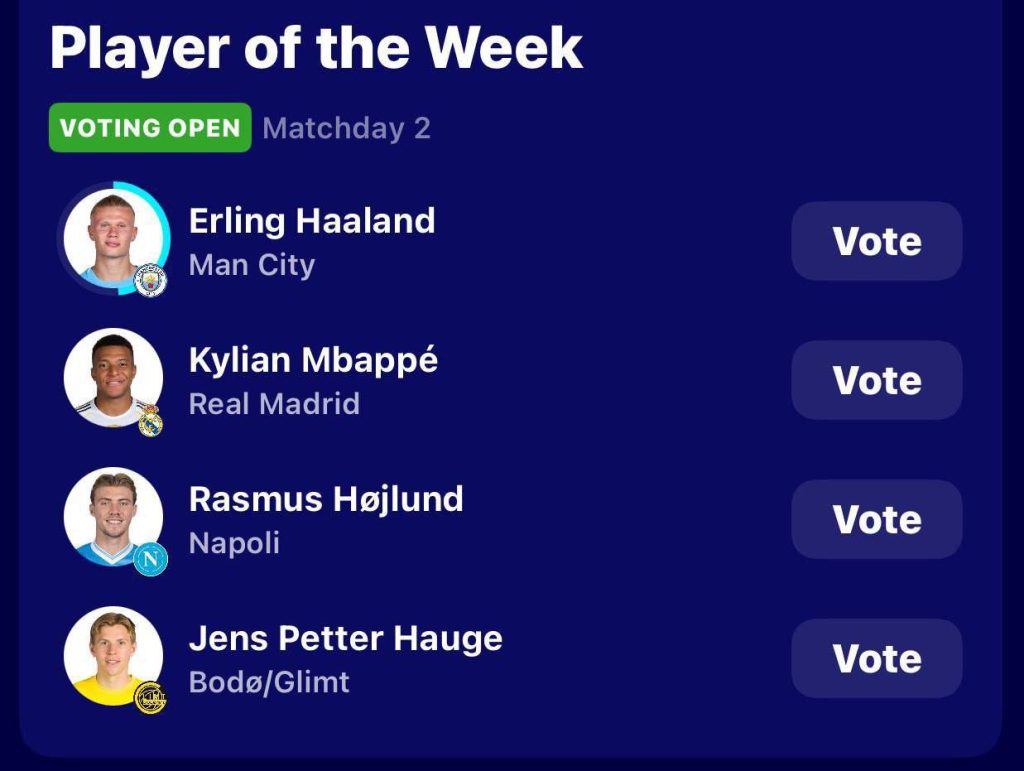 المرشحين لـجائزة رجل الأسبوع في دوري أبطال أوروبا في الجولة الثانية.