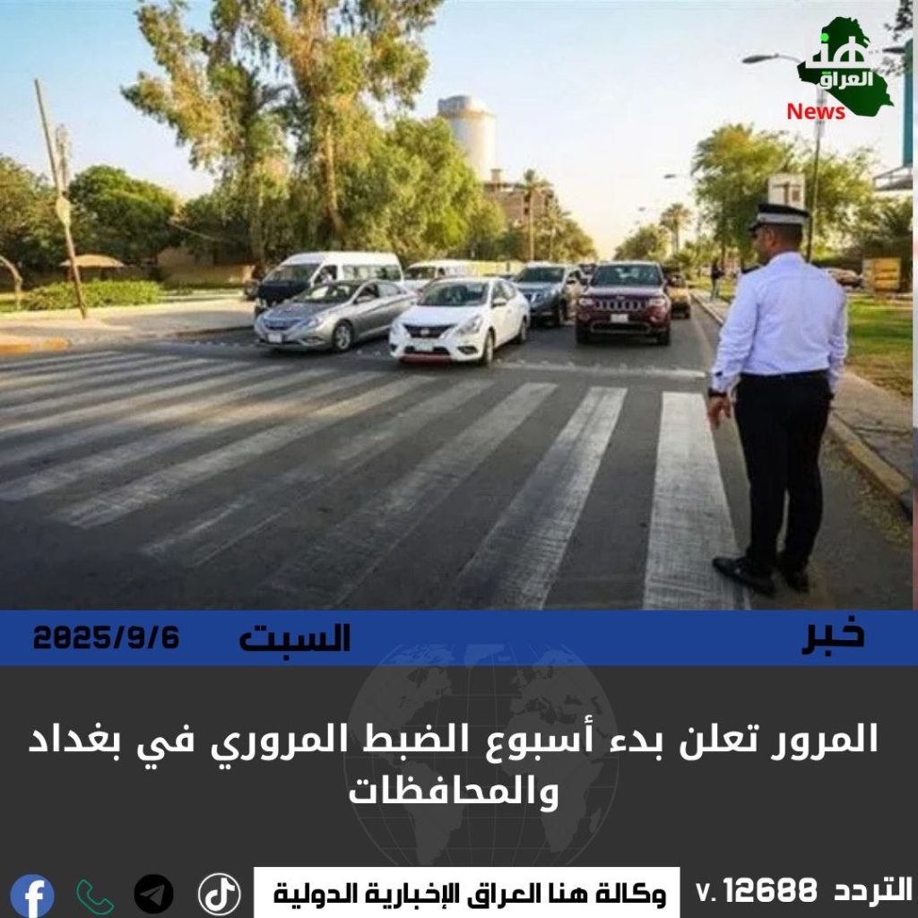 أعلنت مديرية المرور العامة انطلاق أسبوع الضبط المروري في بغداد وكافة المحافظات بهدف الحد من الحوادث الناجمة عن المخالفات، داعية السائقين إلى الالتزام بالقانون والتعليمات المرورية لضمان طرق آمنة وخالية من الحوادث.
