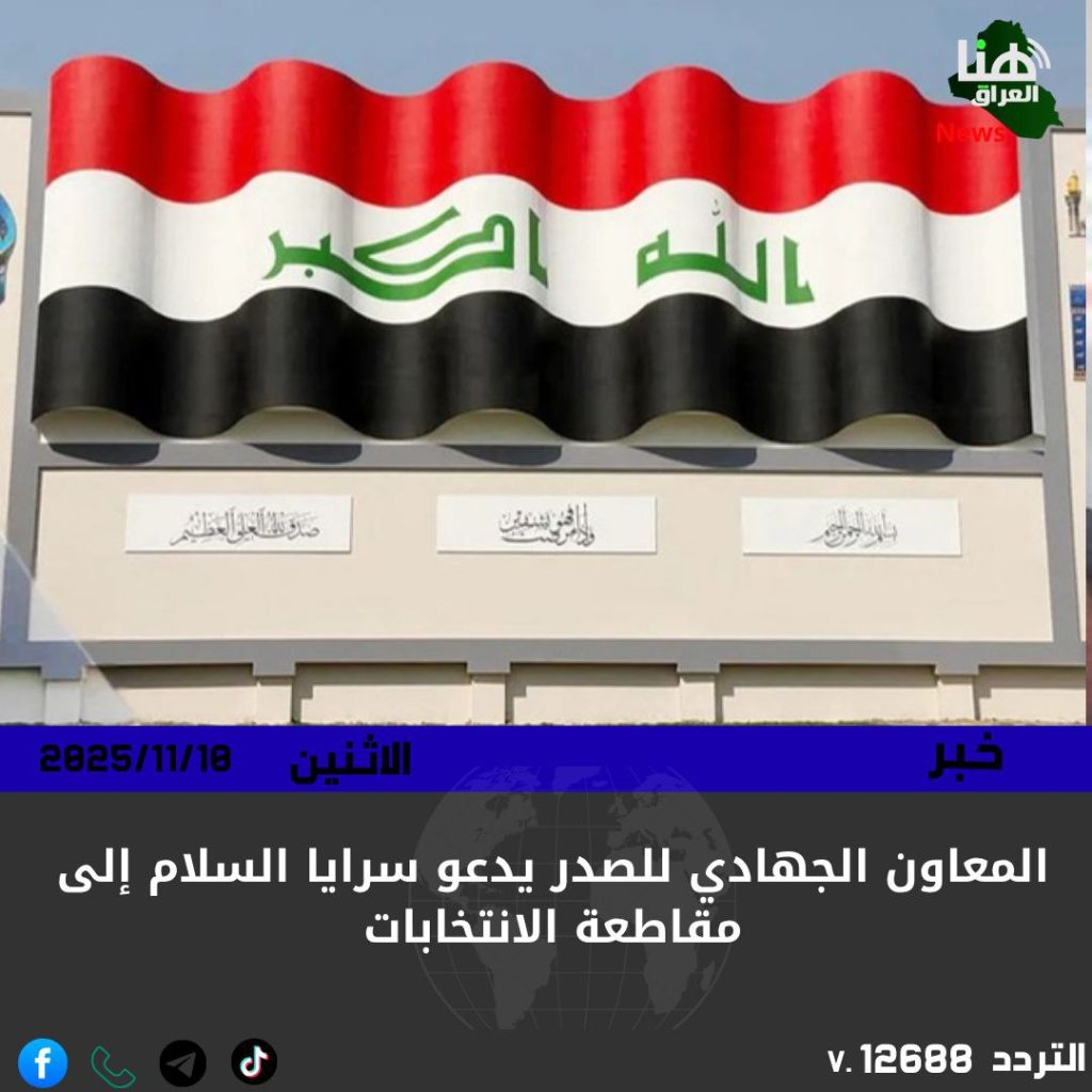 وجّه المعاون الجهادي لزعيم التيار الوطني الشيعي مقتدى الصدر، اليوم الاثنين، دعوة إلى عناصر سرايا السلام لمقاطعة الانتخابات، مؤكداً أن قرار المقاطعة “ليس انسحاباً من الميدان، بل هو أسمى صور الانتصار السلمي”.