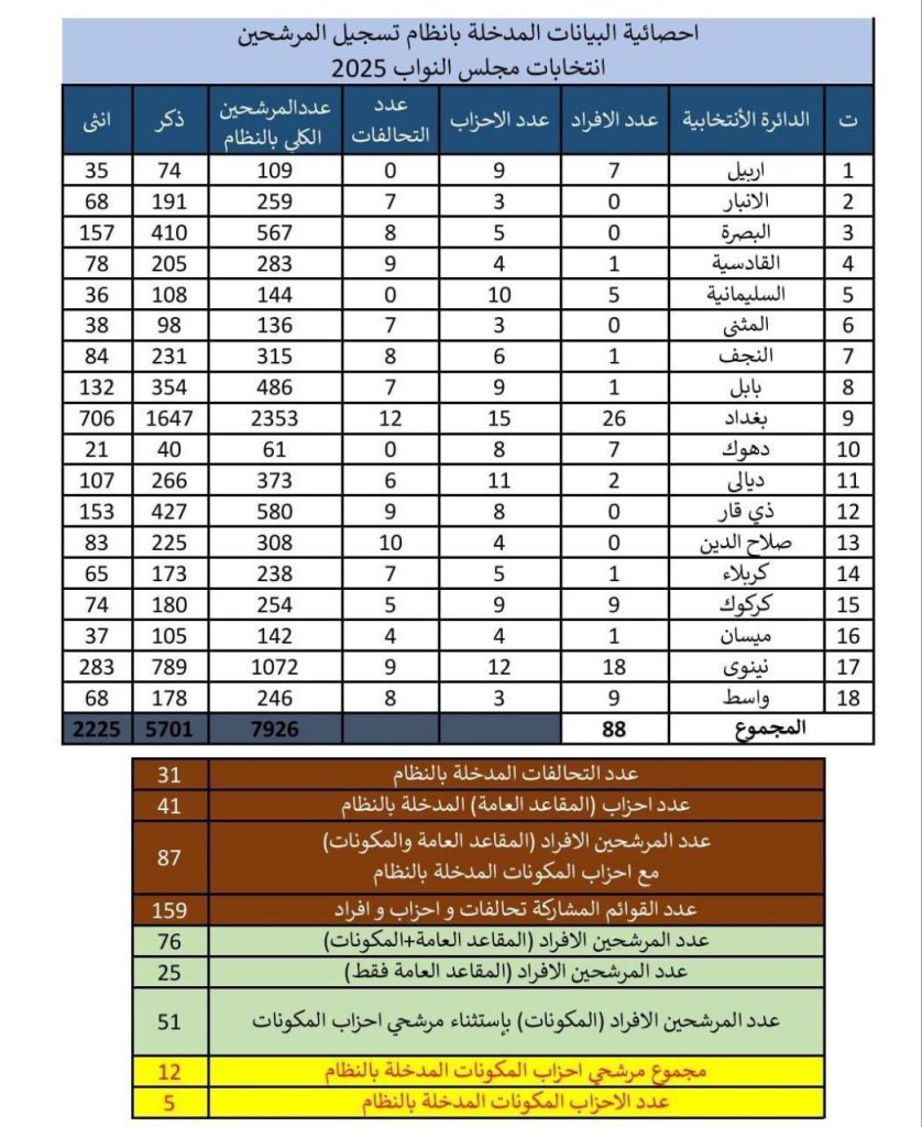 المفوضية العليا للانتخابات: 7926 مرشحاً يتنافسون في الانتخابات النيابية المقبلة