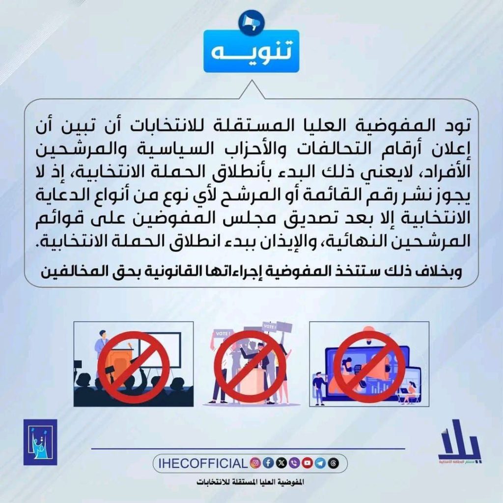 المفوضية تحذر: نشر رقم المرشح قبل المصادقة مخالفة قانونية
