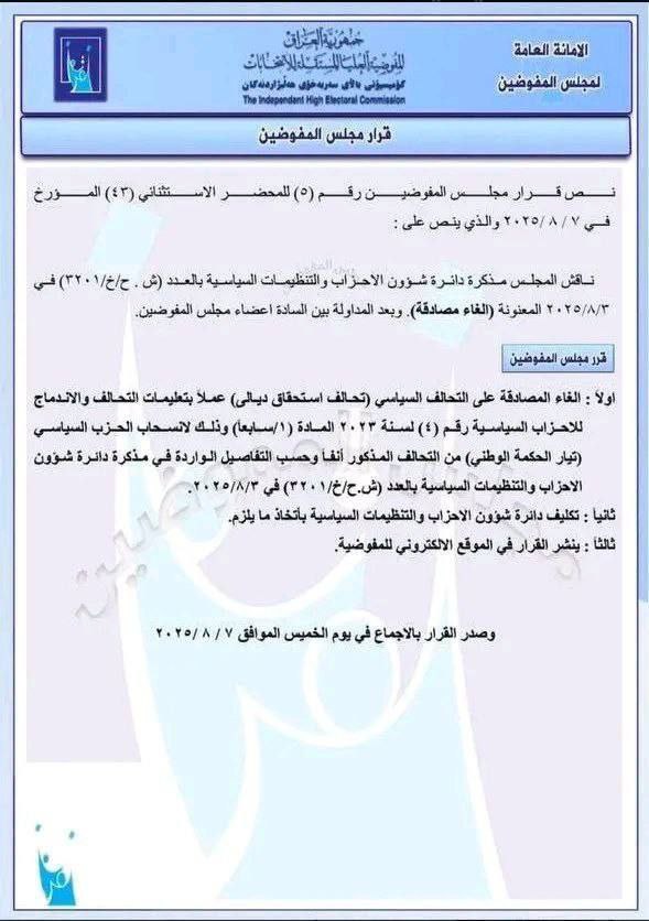 الرئيسية/محلي/المفوضية تلغي المصادقة على تحالف استحقاق ديالى لانسحاب تيار الحكمة الوطني من صفوفه محلي المفوضية تلغي المصادقة على تحالف استحقاق ديالى لانسحاب تيار الحكمة الوطني من صفوفه شاركها فيسبوك X لينكدإن Tumblr بينتيريست Reddit VKontakte Odnoklassniki Pocket مشاركة عبر البريد طباعة