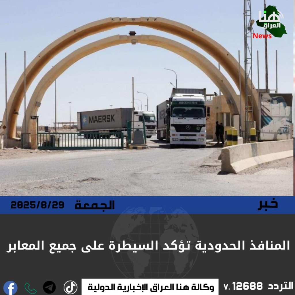 أكدت هيأة المنافذ الحدودية أنها تسيطر على جميع المعابر الرسمية، مشددة على أهمية تعزيز حماية المنتج الوطني من المنافسة غير المشروعة ومنع مرور المواد الممنوعة من الاستيراد.