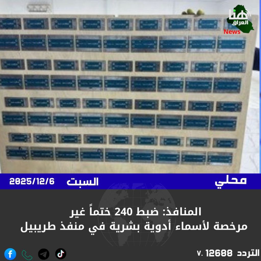 الرئيسية/امن/المنافذ: ضبط 240 ختماً غير مرخصة لأسماء أدوية بشرية في منفذ طريبيل امنمحلي المنافذ: ضبط 240 ختماً غير مرخصة لأسماء أدوية بشرية في منفذ طريبيل شاركها فيسبوك X لينكدإن Tumblr بينتيريست Reddit VKontakte Odnoklassniki Pocket مشاركة عبر البريد طباعة