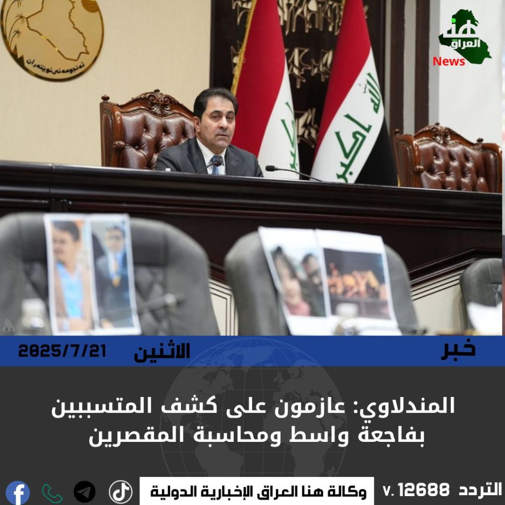 ووجّه المندلاوي بتشكيل لجنة نيابية مختصة لمتابعة تداعيات الكارثة والتحقيق في أسبابها عن كثب، بما يضمن الوصول إلى العدالة ومحاسبة المسؤولين.