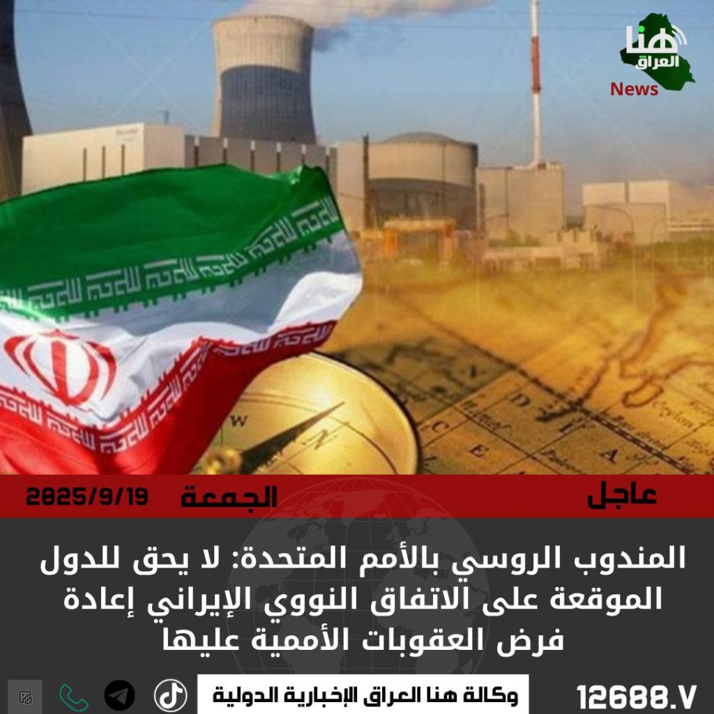 المندوب الروسي بالأمم المتحدة: لا يحق للدول الموقعة على الاتفاق النووي الإيراني إعادة فرض العقوبات الأممية عليها