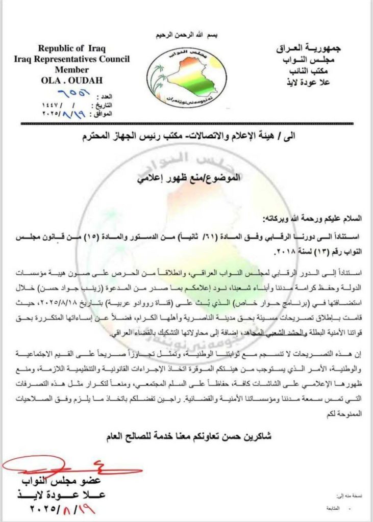 الرئيسية/محلي/النائبة علا عودة تطلب من هيئة الاعلام منع ظهور “زينب جواد” محلي النائبة علا عودة تطلب من هيئة الاعلام منع ظهور “زينب جواد” شاركها فيسبوك X لينكدإن Tumblr بينتيريست Reddit VKontakte Odnoklassniki Pocket مشاركة عبر البريد طباعة