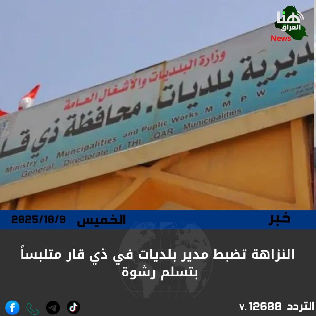 النزاهة تضبط مدير بلديات في ذي قار متلبساً بتسلم رشوة