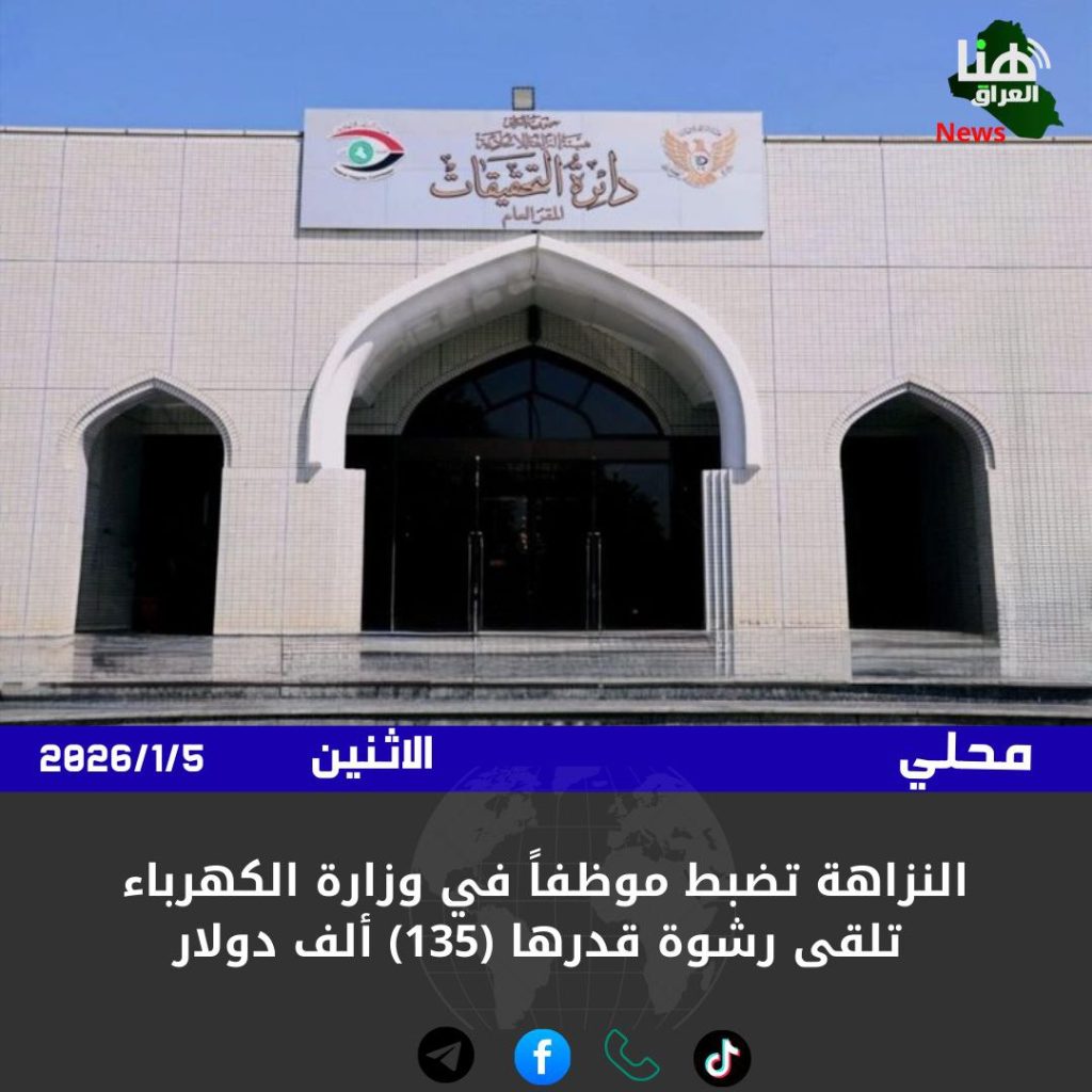 الرئيسية/امن/النزاهة تضبط موظفاً في وزارة الكهرباء تلقى رشوة قدرها (135) ألف دولار امنسياسةمحلي النزاهة تضبط موظفاً في وزارة الكهرباء تلقى رشوة قدرها (135) ألف دولار شاركها فيسبوك X لينكدإن Tumblr بينتيريست Reddit VKontakte Odnoklassniki Pocket مشاركة عبر البريد طباعة