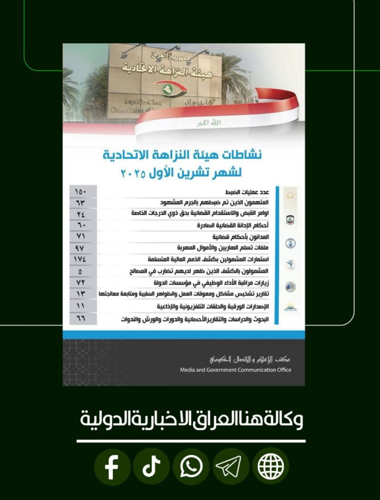 الرئيسية/سياسة/النزاهة: 24 أمر قبض واستقدام لذوي الدرجات الخاصة خلال تشرين الأول الماضي سياسةمحلي النزاهة: 24 أمر قبض واستقدام لذوي الدرجات الخاصة خلال تشرين الأول الماضي شاركها فيسبوك X لينكدإن Tumblr بينتيريست Reddit VKontakte Odnoklassniki Pocket مشاركة عبر البريد طباعة