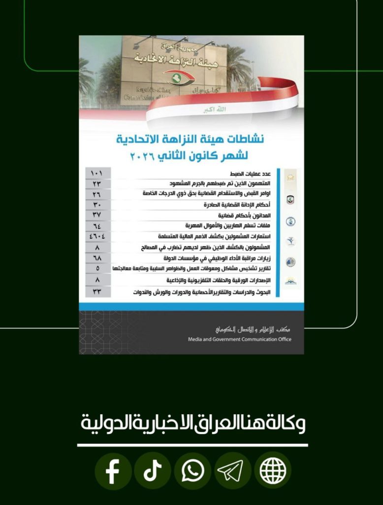 الرئيسية/امن/النزاهة: 26 أمر قبض واستقدام بحق ذوي الدرجات الخاصة خلال كانون الثاني الماضي امنسياسةمحلي النزاهة: 26 أمر قبض واستقدام بحق ذوي الدرجات الخاصة خلال كانون الثاني الماضي