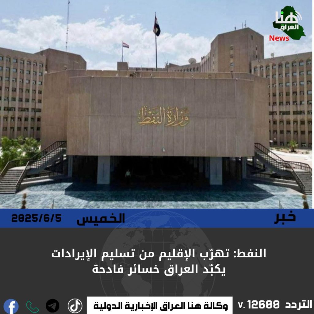 حذّرت وزارة النفط من استمرار حكومة إقليم كردستان في عدم تسليم واردات النفط إلى الحكومة الاتحادية، معتبرة أن هذا السلوك يلحق خسائر مالية جسيمة ويضر بسمعة العراق والتزاماته الدولية.