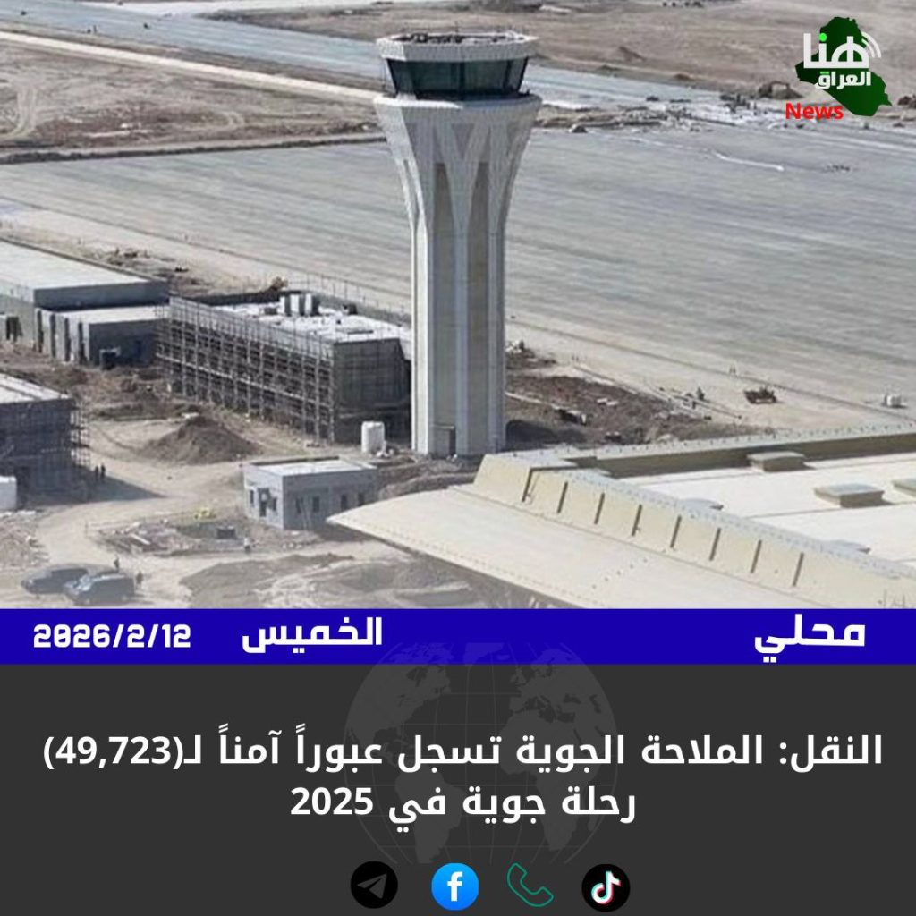 الرئيسية/محلي/النقل: الملاحة الجوية تسجل عبوراً آمناً لـ(49,723) رحلة جوية في 2025 محلي النقل: الملاحة الجوية تسجل عبوراً آمناً لـ(49,723) رحلة جوية في 2025 شاركها فيسبوك X لينكدإن Tumblr بينتيريست Reddit VKontakte Odnoklassniki Pocket مشاركة عبر البريد طباعة