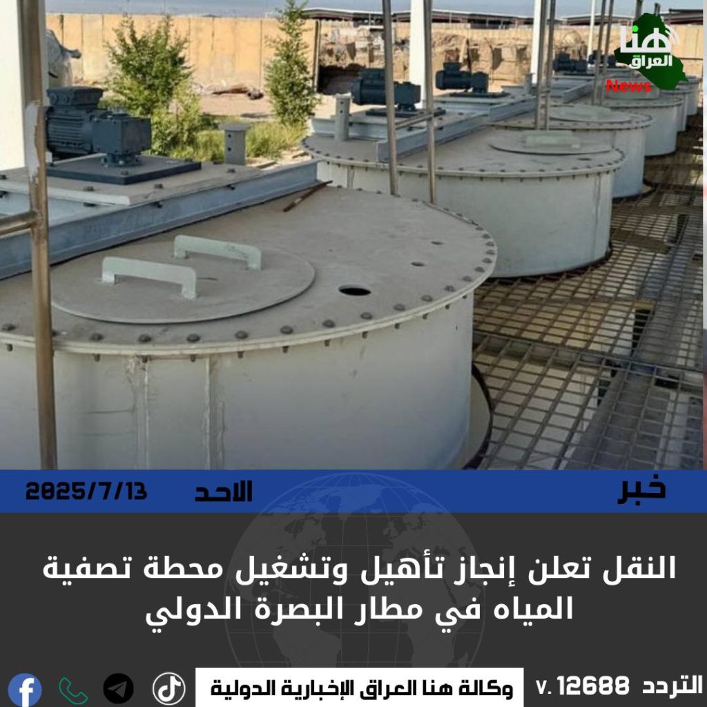 النقل تعلن إنجاز تأهيل وتشغيل محطة تصفية المياه في مطار البصرة الدولي.