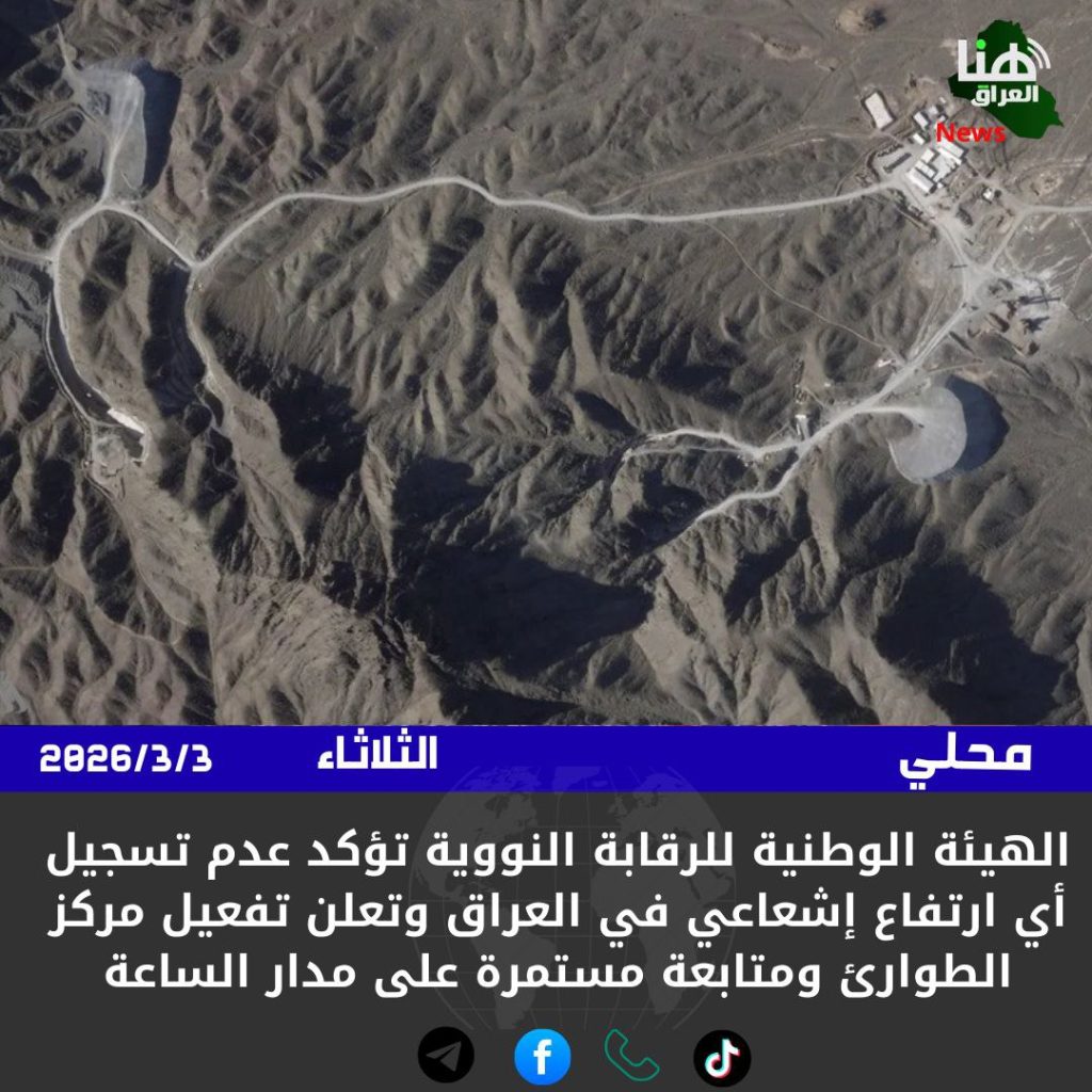 الهيئة الوطنية للرقابة النووية تؤكد عدم تسجيل أي ارتفاع إشعاعي في العراق وتعلن تفعيل مركز الطوارئ ومتابعة مستمرة على مدار الساعة
