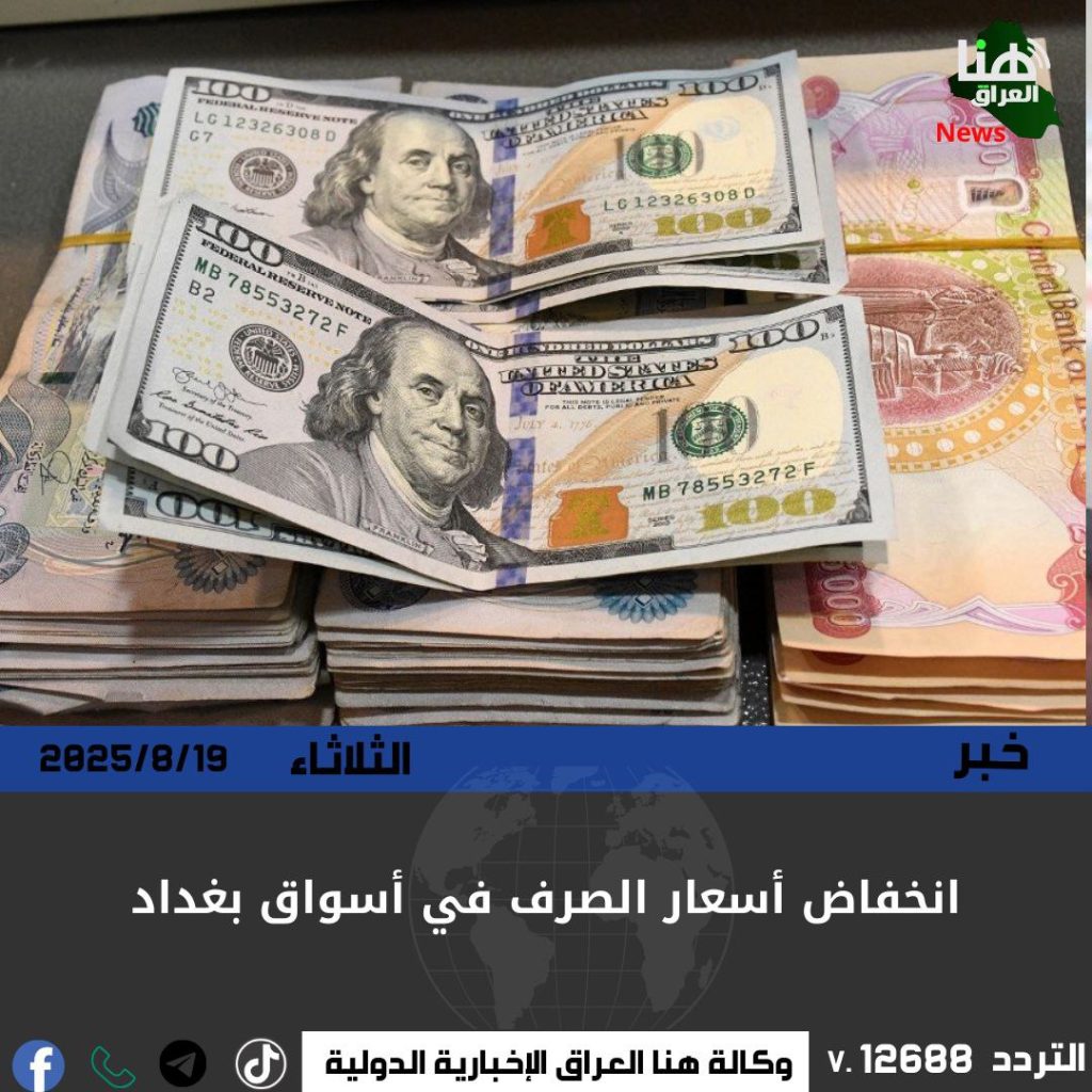 شهدت أسعار الدولار انخفاضاً في أسواق بغداد، حيث سجلت بورصتا الكفاح والحارثية 140600 دينار عراقي مقابل 100 دولار، بعد أن سجلت أمس 140950 ديناراً.