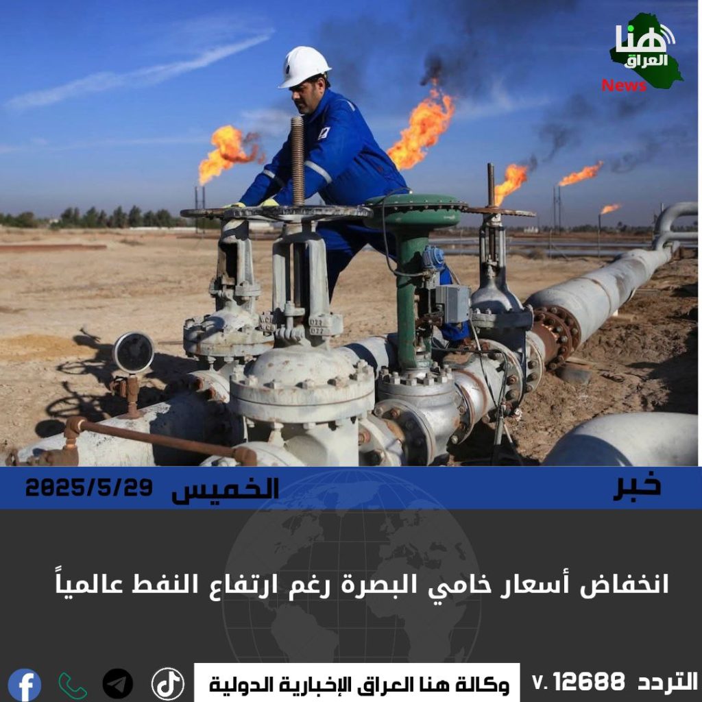 وانخفض خام البصرة الثقيل بمقدار 41 سنتًا ليبلغ 60.65 دولاراً للبرميل، كما انخفض الخام المتوسط بالسعر ذاته ليصل إلى 63.60 دولاراً. بينما صعد خام برنت إلى 65.71 دولارًا، وخام غرب تكساس إلى 62.62 دولارًا.