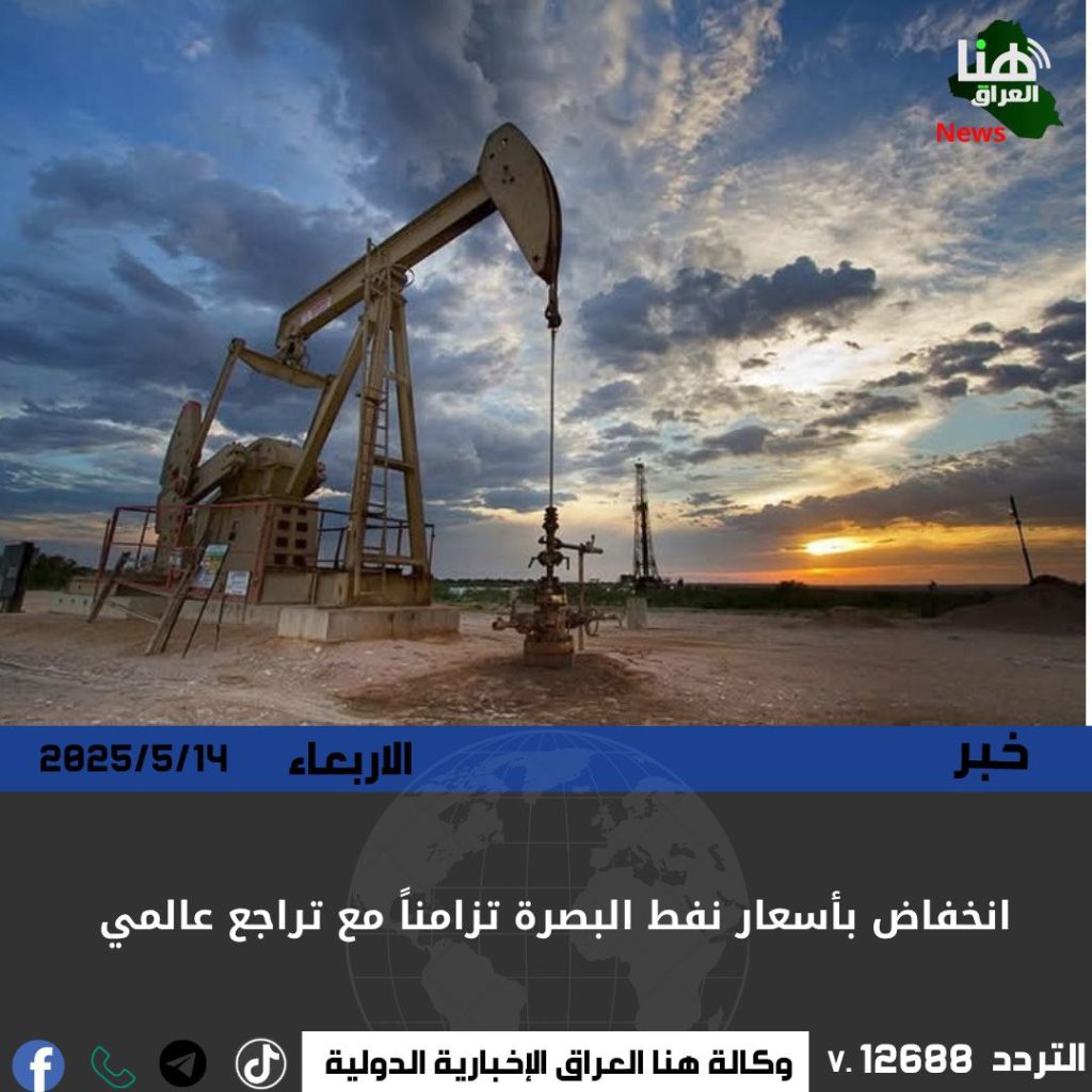سجلت أسعار خام البصرة الثقيل والمتوسط تراجعاً جديداً بالتزامن مع انخفاض أسعار النفط في الأسواق العالمية.
