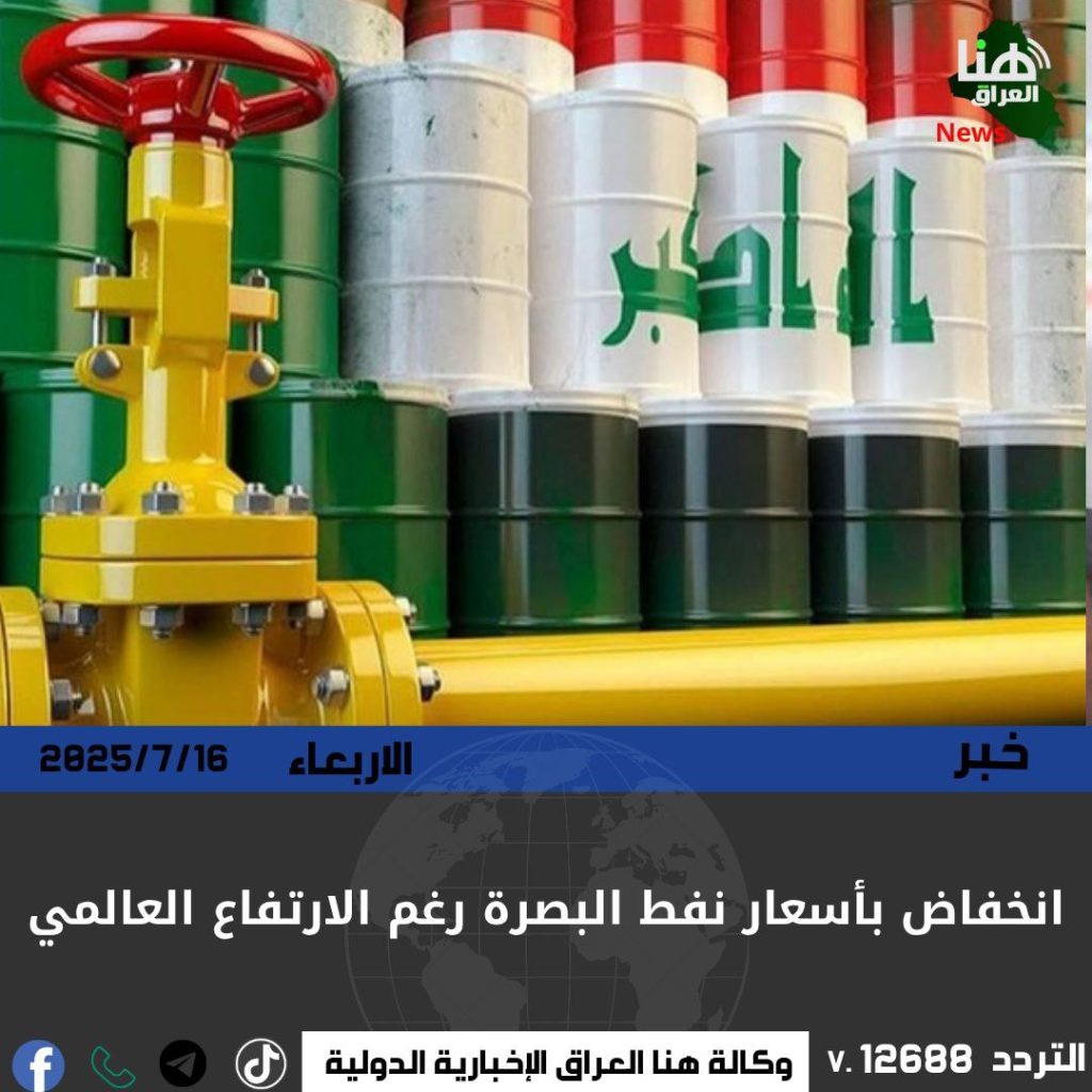 سجّل خام البصرة الثقيل تراجعاً بنسبة 1.55% ليصل إلى 67.49 دولارًا، فيما انخفض الخام المتوسط بنسبة مماثلة ليصل إلى 70.54 دولارًا، رغم ارتفاع الأسعار العالمية.