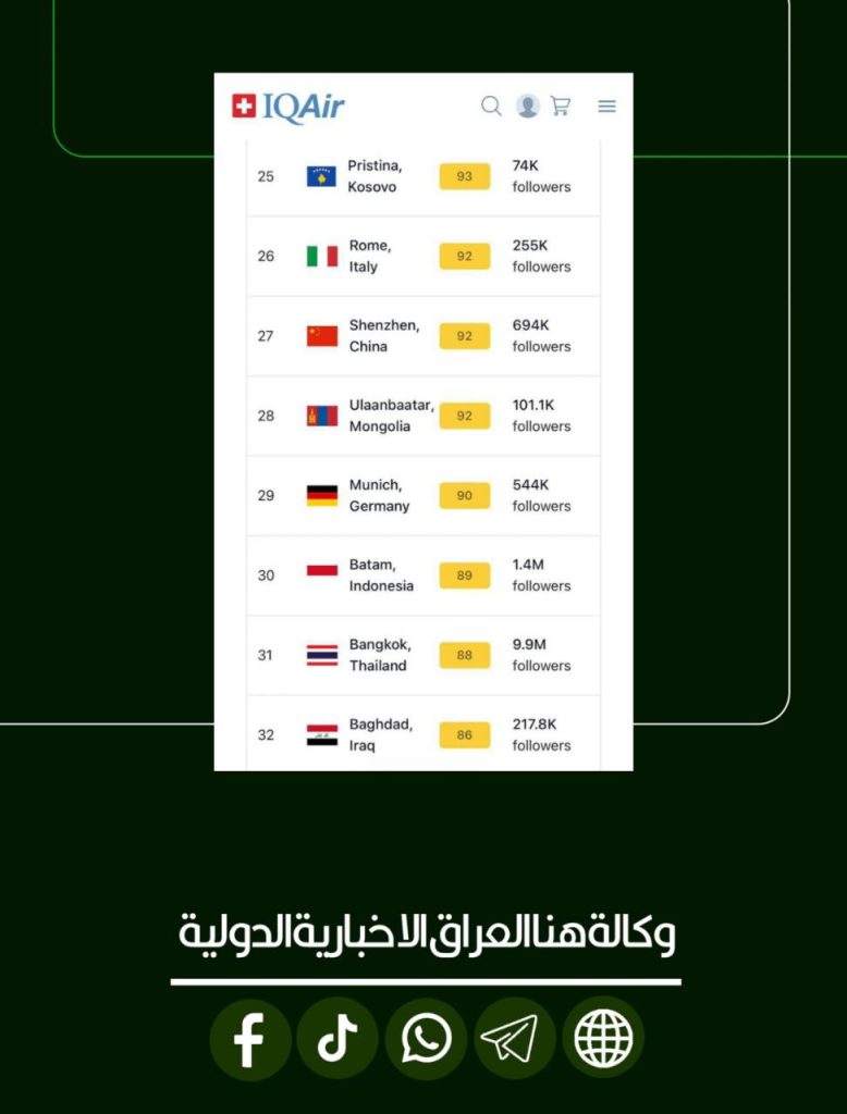 انخفاض تلوث الهواء في عدد من المدن العراقية