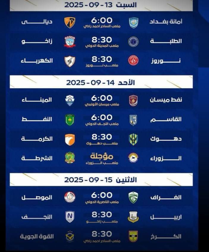 الرئيسية/رياضة/انطلاق الجولة الأولى من دوري نجوم العراق في 13 أيلول رياضة انطلاق الجولة الأولى من دوري نجوم العراق في 13 أيلول شاركها فيسبوك X لينكدإن Tumblr بينتيريست Reddit VKontakte Odnoklassniki Pocket مشاركة عبر البريد طباعة