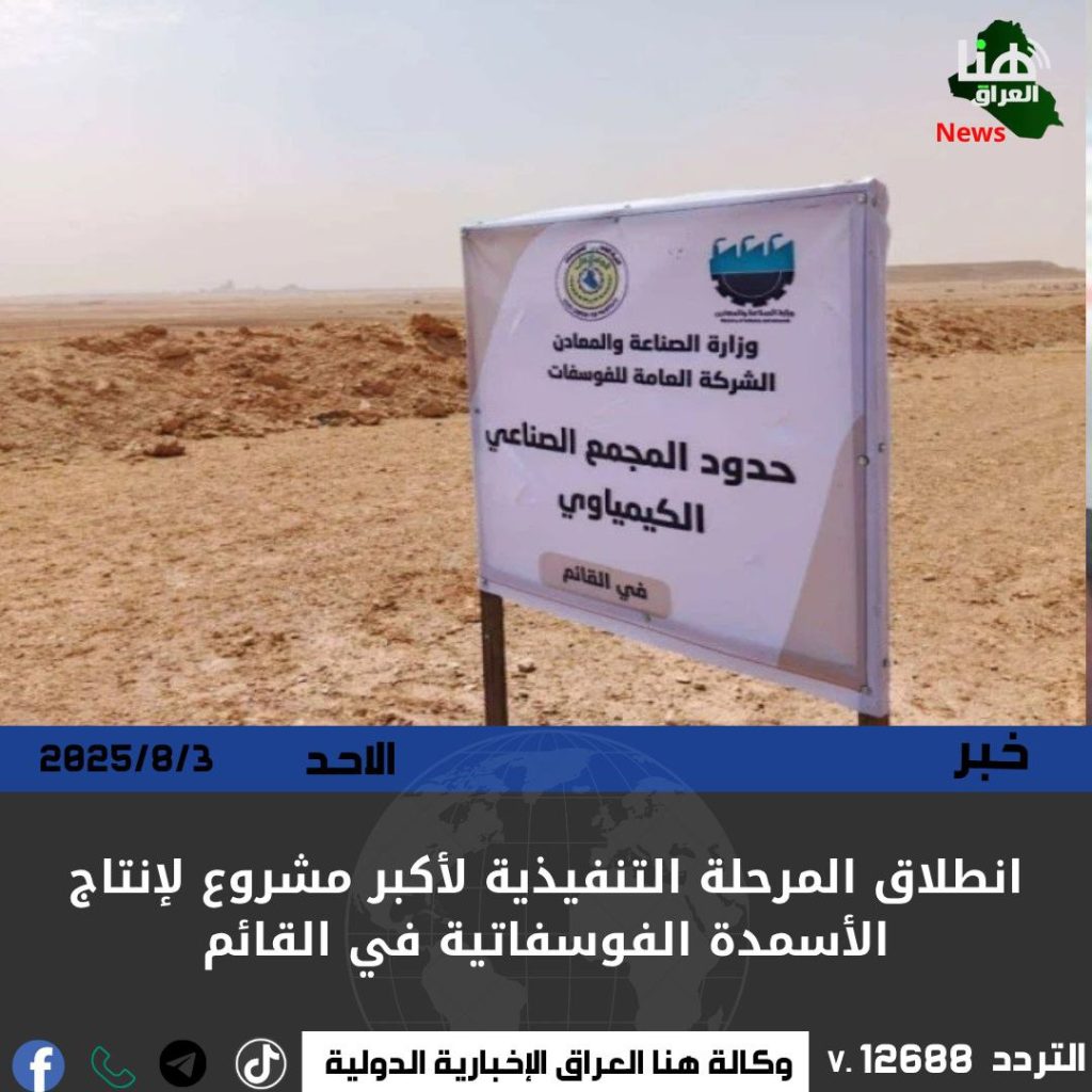 انطلاق المرحلة التنفيذية لأكبر مشروع لإنتاج الأسمدة الفوسفاتية في القائم
