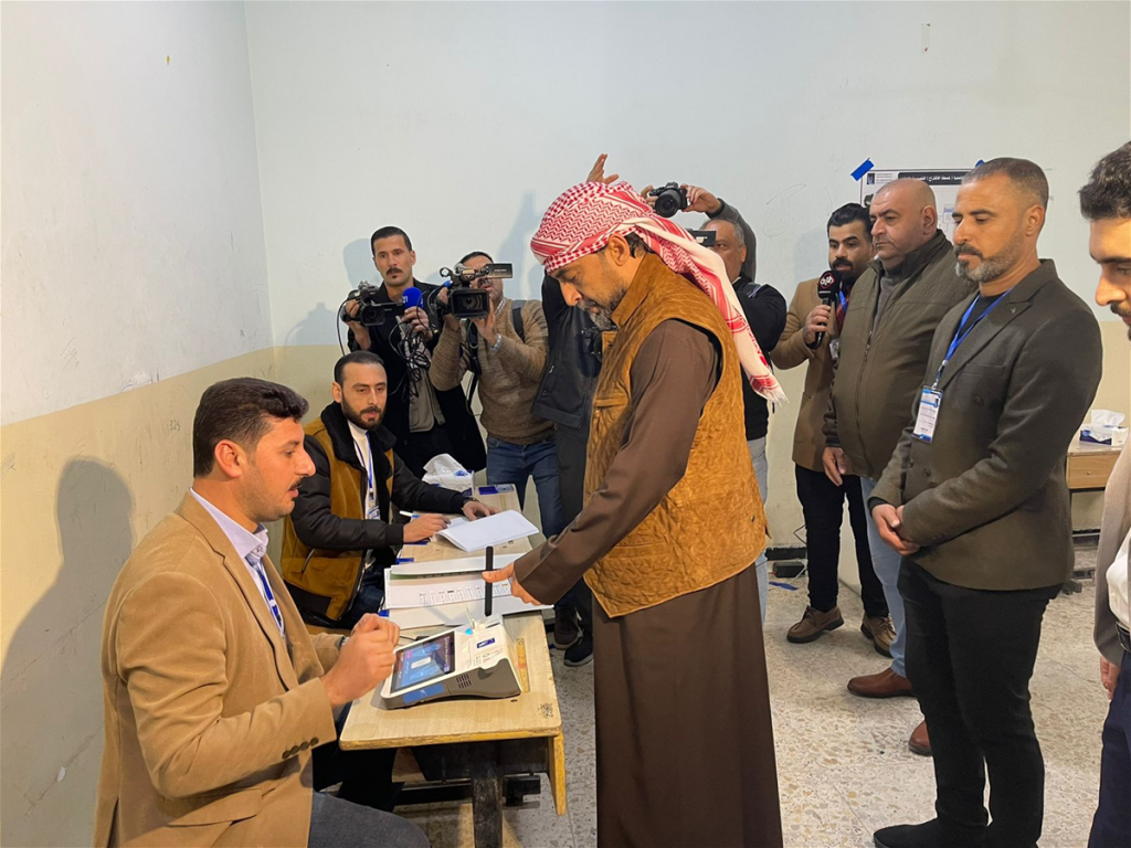 أدلى زعيم حزب تقدم، محمد الحلبوسي بصوته في التصويت العام لانتخابات مجالس المحافظات، من احدى مراكز الاقتراع في محافظة الانبار.