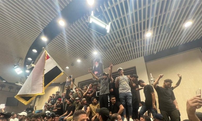 وكان متظاهرون قد أقدموا اليوم السبت، على اقتحام المنطقة الخضراء ثم مجلس النواب، ليعلن بعدها مدير مكتب الشهيد الصدر في بغداد ابراهيم الجابري، عن اعتصام مفتوح داخل البرلمان؛ رفضاً لترشيح محمد شياع السوداني لمنصب رئاسة الحكومة.