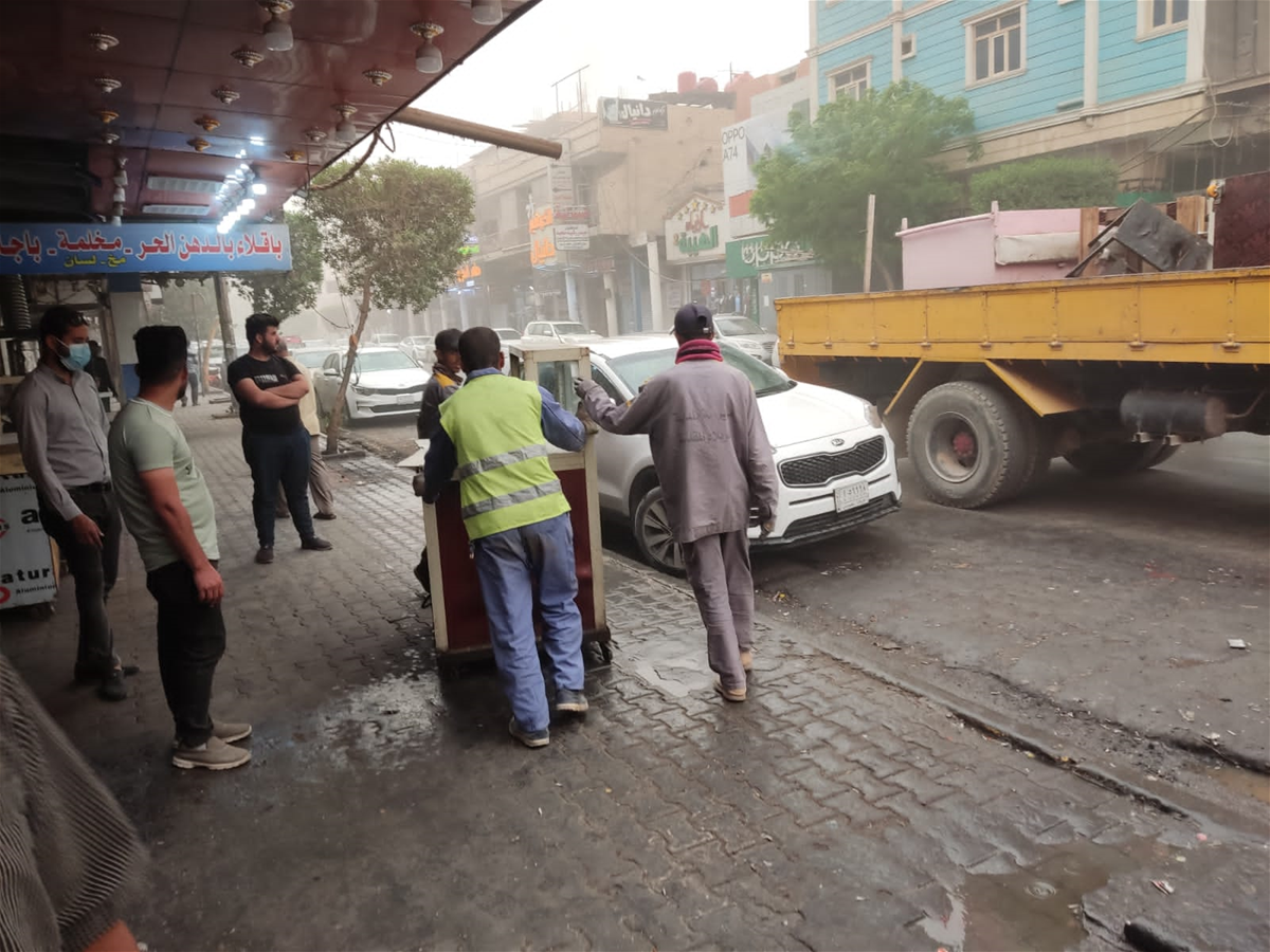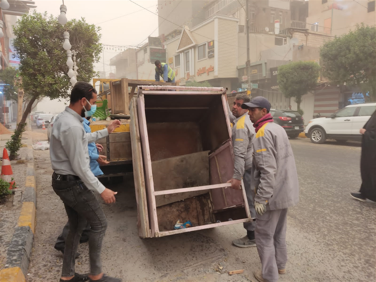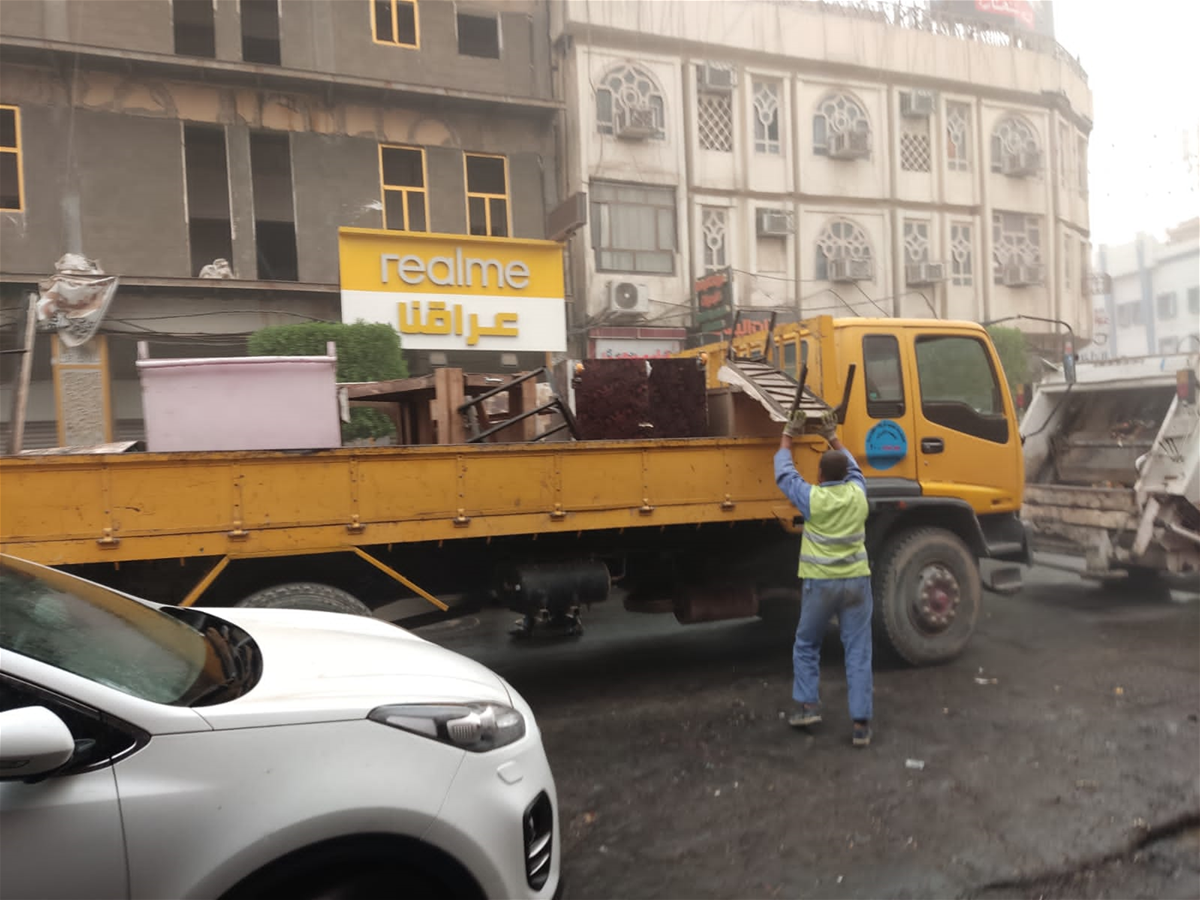 بالصور.. بلدية كربلاء تباشر بحملة لرفع التجاوزات في مركز المدينة
