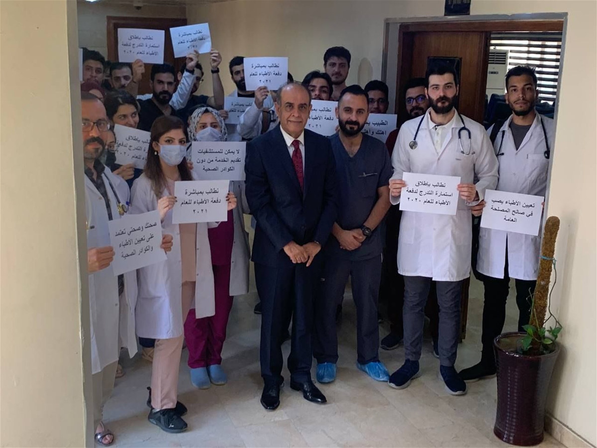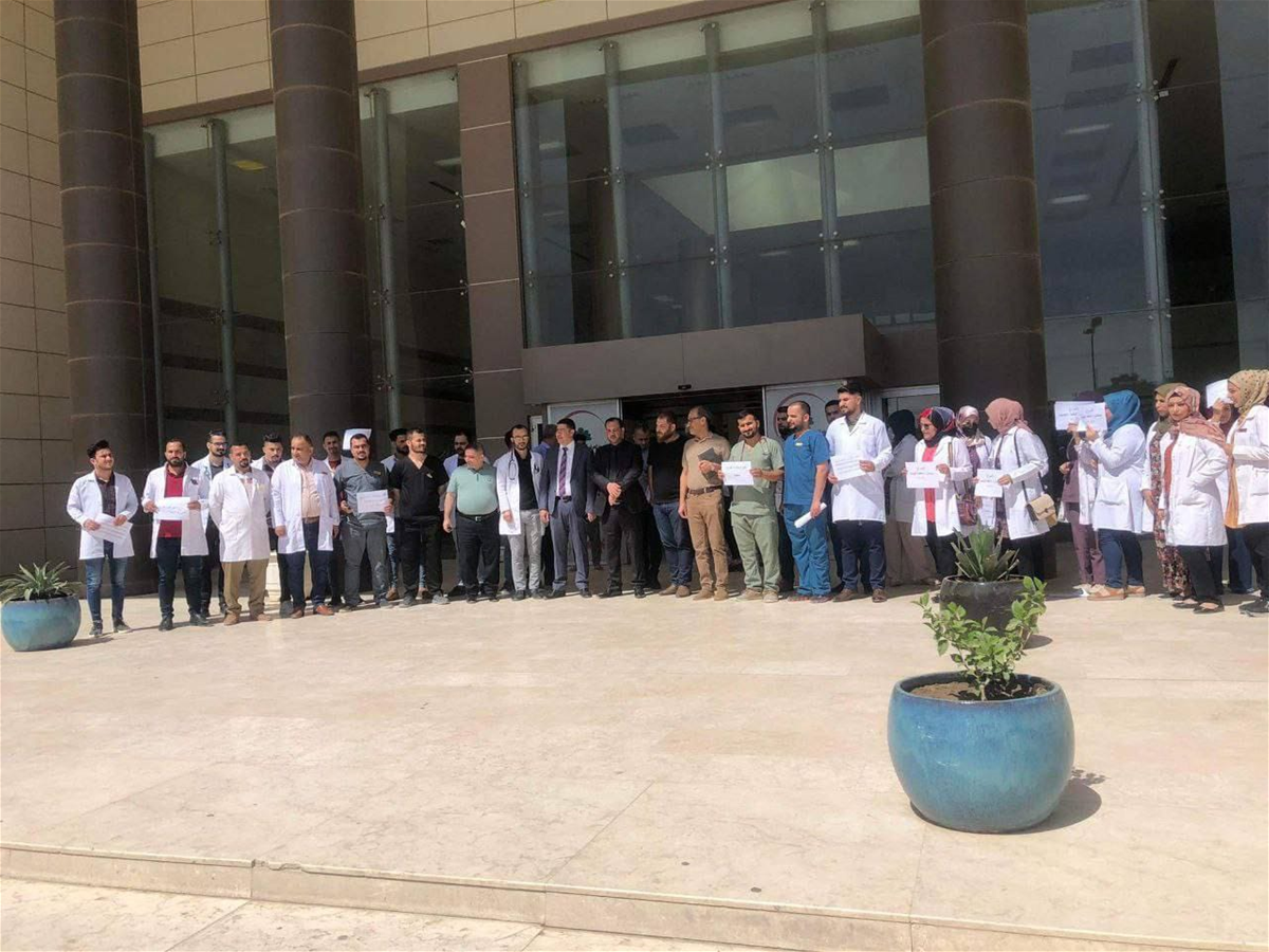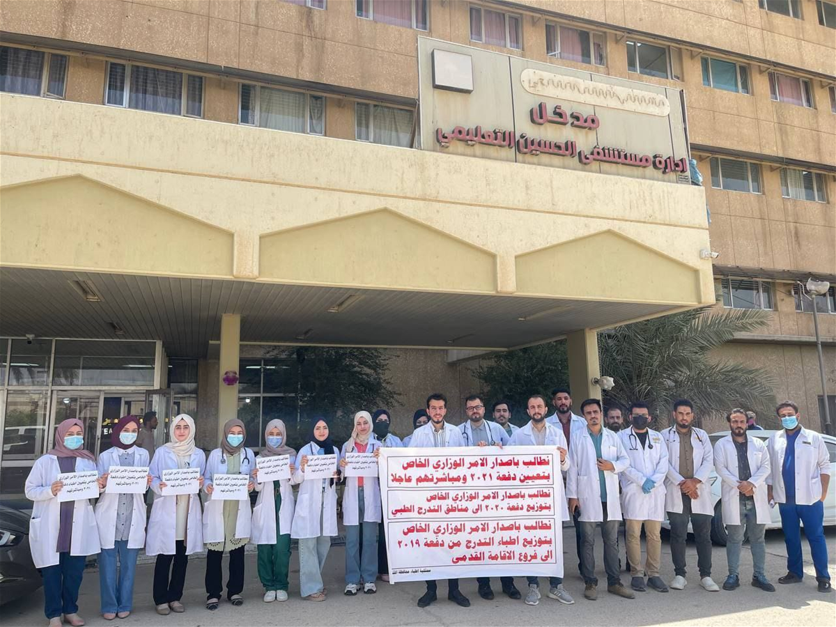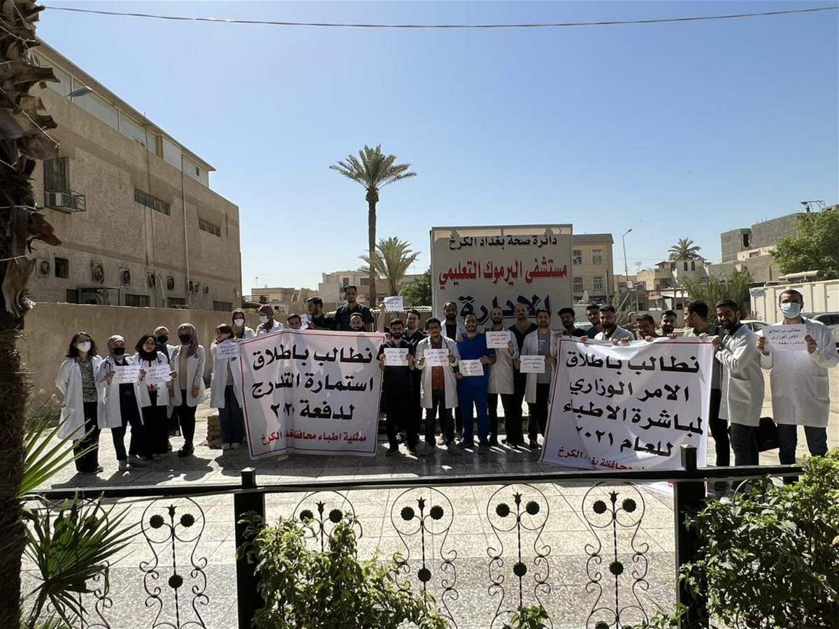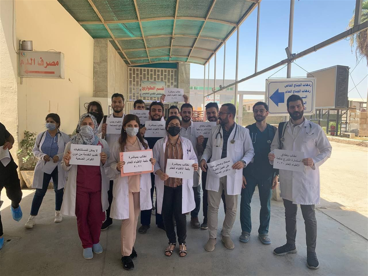 نظم الاطباء في جميع المستشفيات، وقفات احتجاجية للمطالبة بمباشرة الأطباء حديثي التخرج 2021 وتدرج الأطباء من دفعة 2020.