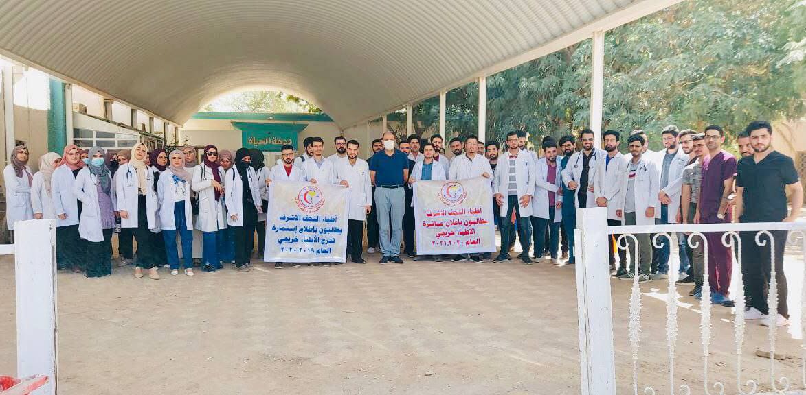 وقال مراسل ، ان “الاطباء في جميع المستشفيات، نظموا وقفات احتجاجية للمطالبة بمباشرة الأطباء حديثي التخرج 2021 وتدرج الأطباء من دفعة 2020 وفي حال لم يتم الاستجابة للمطالب بصورة عاجلة ستكون هناك خطوات تصعيدية لاحقة”.