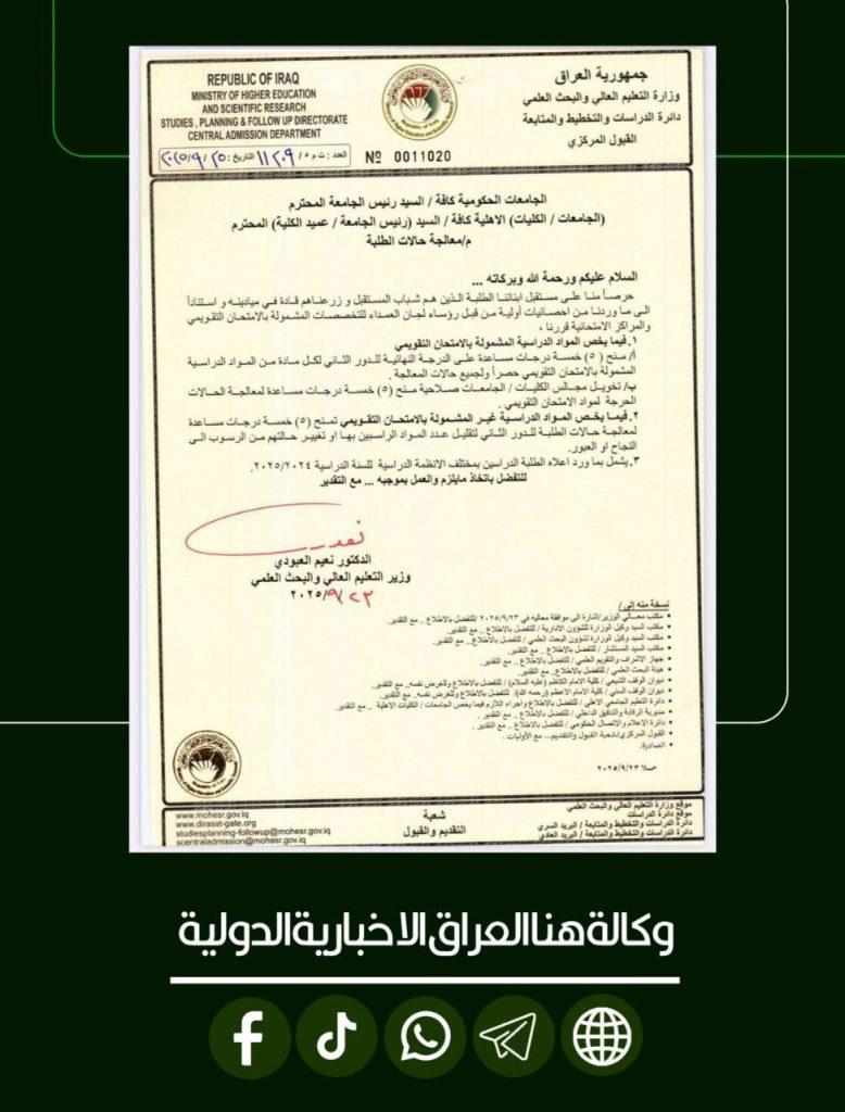 بالوثائق.. التعليم تمنح خمس درجات إضافية لطلبة الدور الثاني
