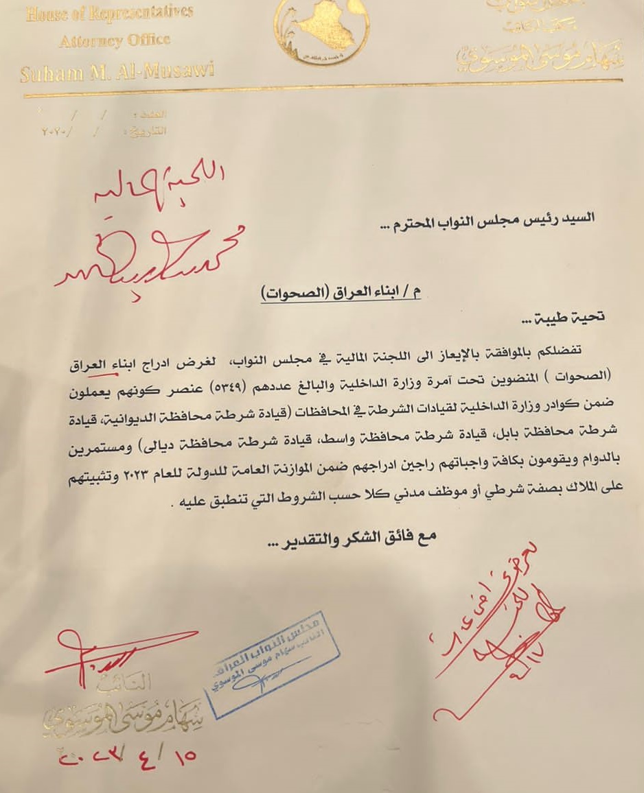 بالوثائق.. تواقيع برلمانية تخص “الصحوات” في الموازنة