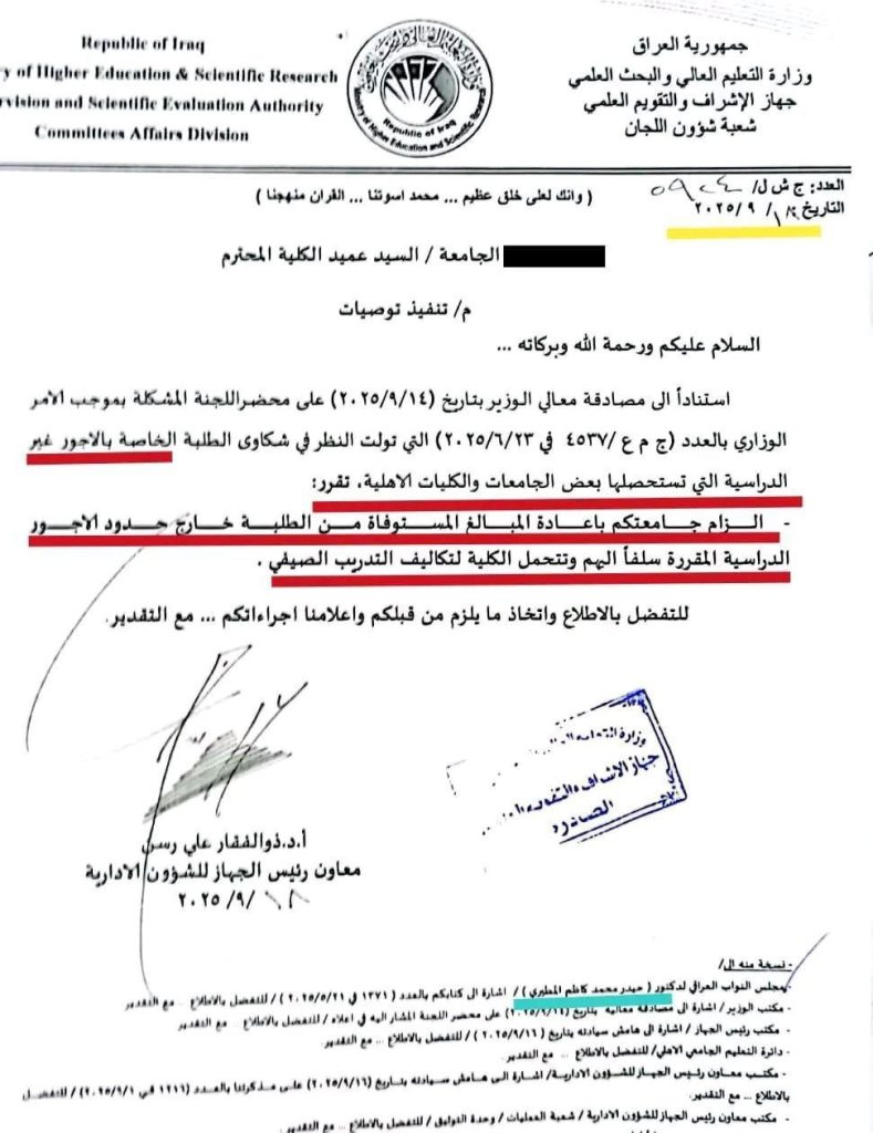 بالوثيقة.. إلزام الجامعات الأهلية بإرجاع جميع المبالغ المستوفاة من الطلبة (للتدريب الصيفي) خارج حدود الأجورالدراسية