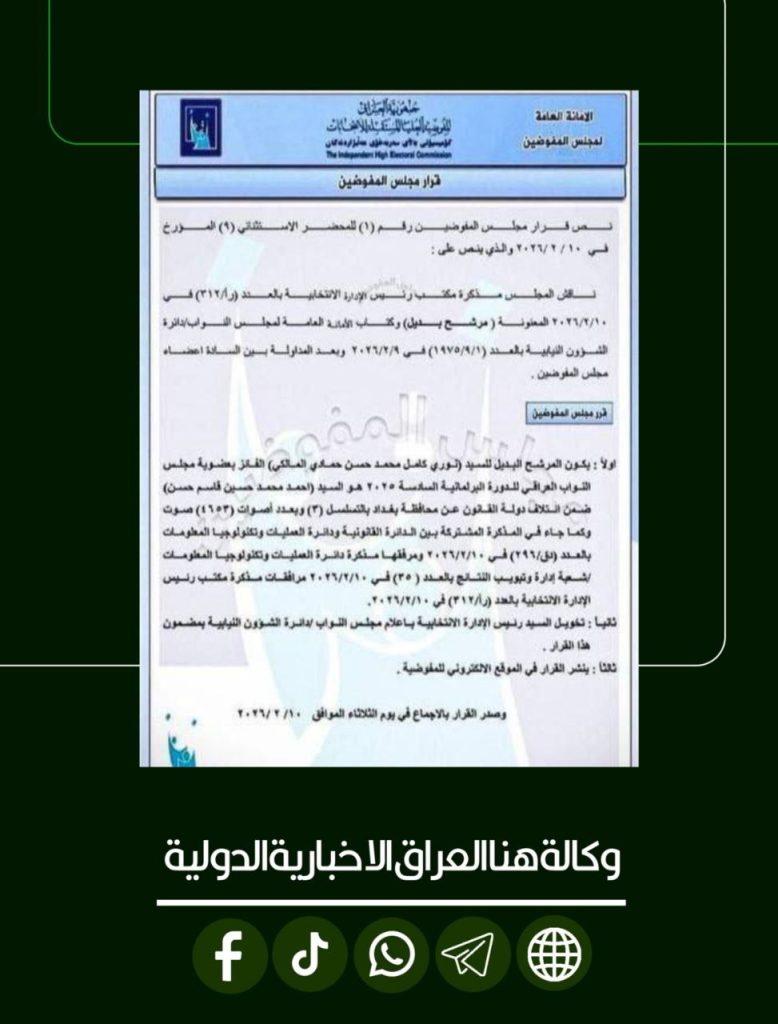 الرئيسية/سياسة/بالوثيقة.. احمد المبرقع بديلاً عن نوري المالكي في عضوية مجلس النواب سياسةمحلي بالوثيقة.. احمد المبرقع بديلاً عن نوري المالكي في عضوية مجلس النواب شاركها فيسبوك X لينكدإن Tumblr بينتيريست Reddit VKontakte Odnoklassniki Pocket مشاركة عبر البريد طباعة