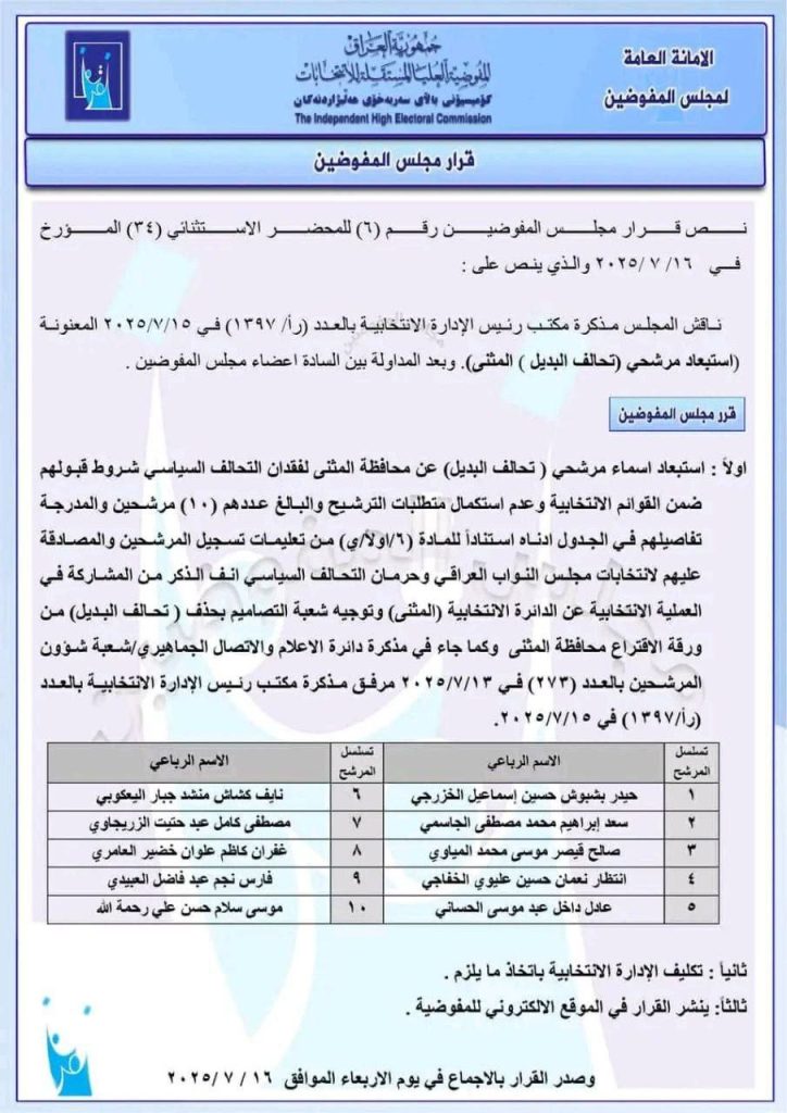 الرئيسية/سياسة/بالوثيقة.. المفوضية تستبعد جميع مرشحي تحالف البديل في محافظة المثنى سياسةمحلي بالوثيقة.. المفوضية تستبعد جميع مرشحي تحالف البديل في محافظة المثنى شاركها فيسبوك X لينكدإن Tumblr بينتيريست Reddit VKontakte Odnoklassniki Pocket مشاركة عبر البريد طباعة