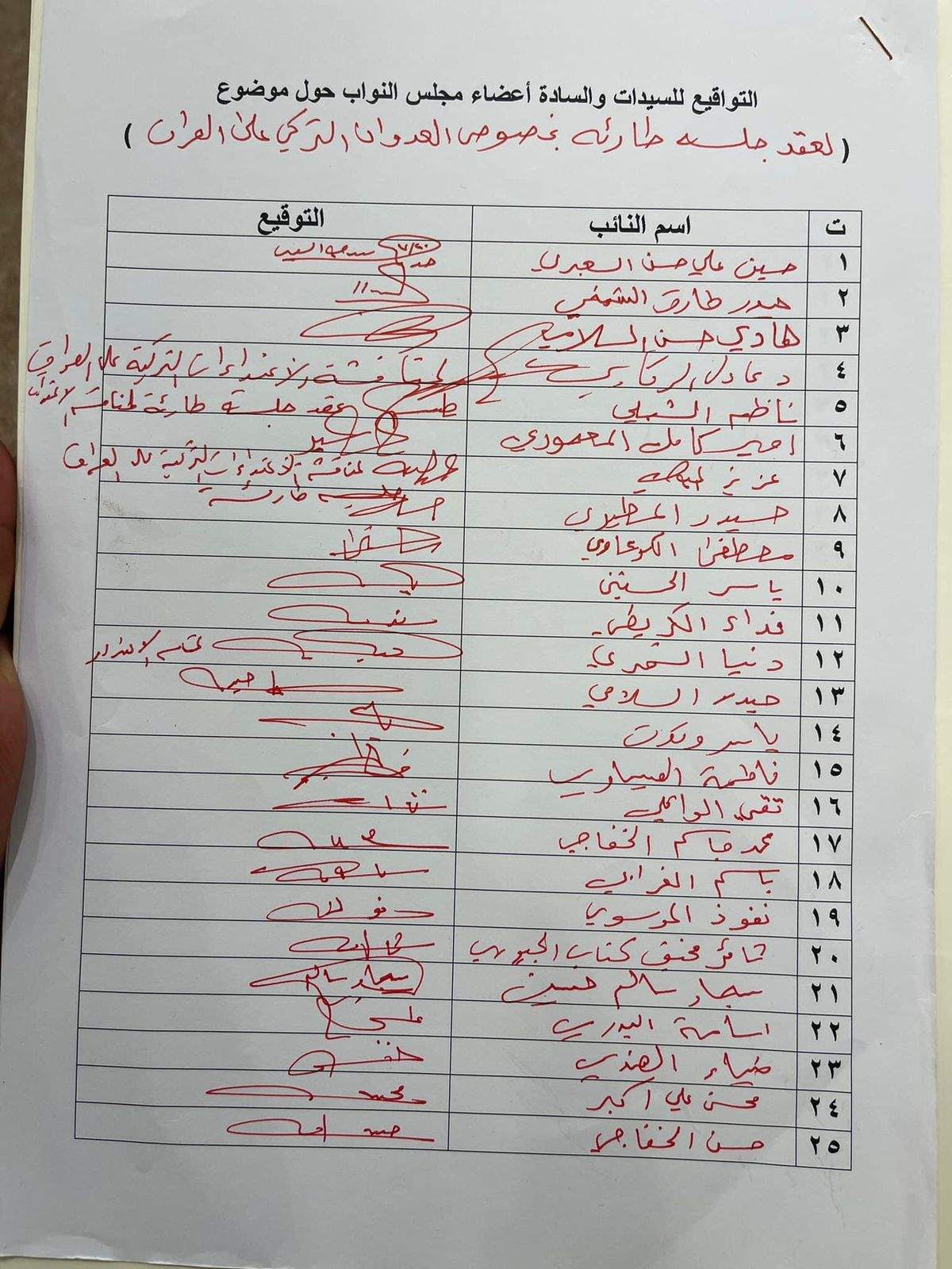 بالوثيقة.. جمع تواقيع نيابية لعقد جلسة طارئة بشأن الانتهاكات التركية