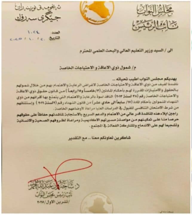 الرئيسية/سياسة/بالوثيقة..رئاسة البرلمان تدعو وزارة التعليم إلى شمول ذوي الإعاقة والاحتياجات الخاصة واستثنائهم من شرط الامتحان التنافسي للدراسات العليا سياسةمحلي بالوثيقة..رئاسة البرلمان تدعو وزارة التعليم إلى شمول ذوي الإعاقة والاحتياجات الخاصة واستثنائهم من شرط الامتحان التنافسي للدراسات العليا شاركها فيسبوك X لينكدإن Tumblr بينتيريست Reddit VKontakte Odnoklassniki Pocket مشاركة عبر البريد طباعة