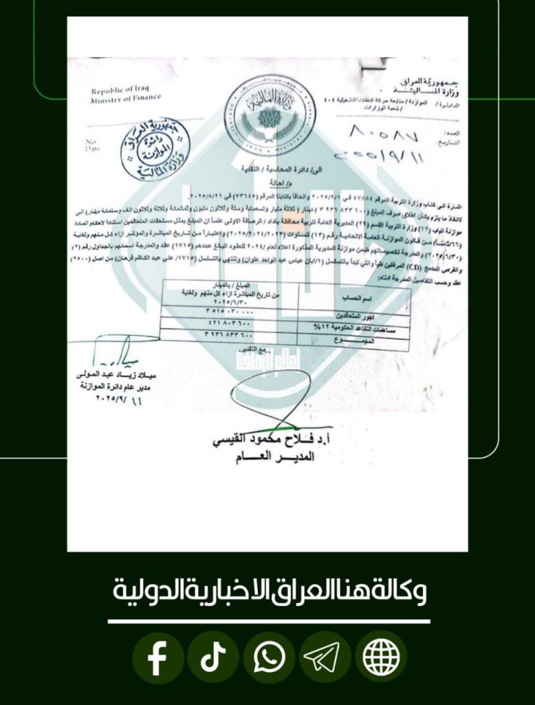 الرئيسية/اقتصاد/بالوثيقة.. وزارة المالية تعلن انطلاق تمويل رواتب الوجبة الأولى لعقود تربية الرصافة الأولى البالغ عددهم 1715 موظفاً اقتصادمحلي بالوثيقة.. وزارة المالية تعلن انطلاق تمويل رواتب الوجبة الأولى لعقود تربية الرصافة الأولى البالغ عددهم 1715 موظفاً شاركها فيسبوك X لينكدإن Tumblr بينتيريست Reddit VKontakte Odnoklassniki Pocket مشاركة عبر البريد طباعة