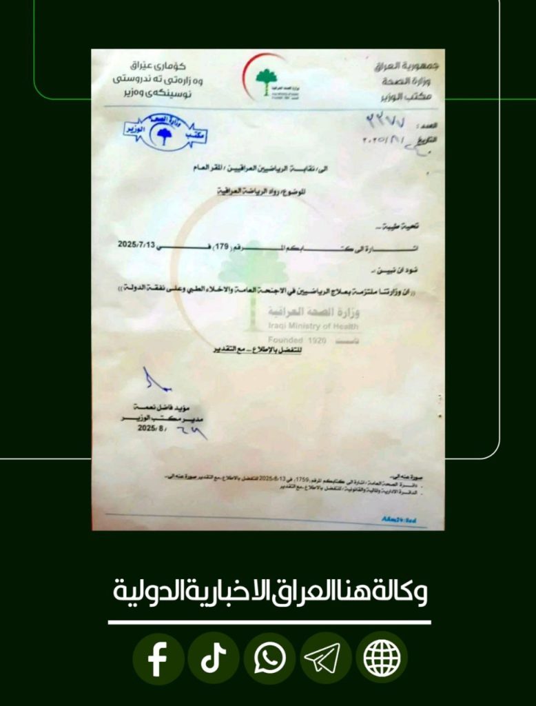 بالوثيقة.. وزير الصحة يوافق على معالجة الرياضيين والرواد مجاناً وعلى نفقة الدولة