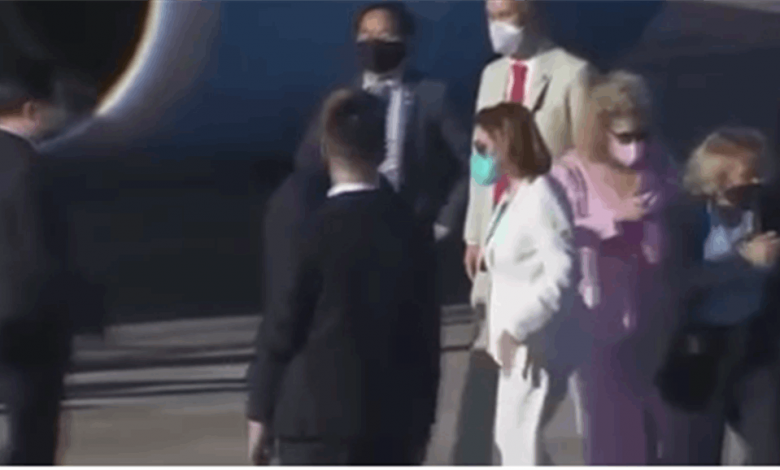 قامت رئيسة مجلس النواب الأمريكي، نانسي بيلوسي، بتوزيع ميداليات تذكارية لمن رافقوها في تايوان قبل مغادرتها تايبيه.
