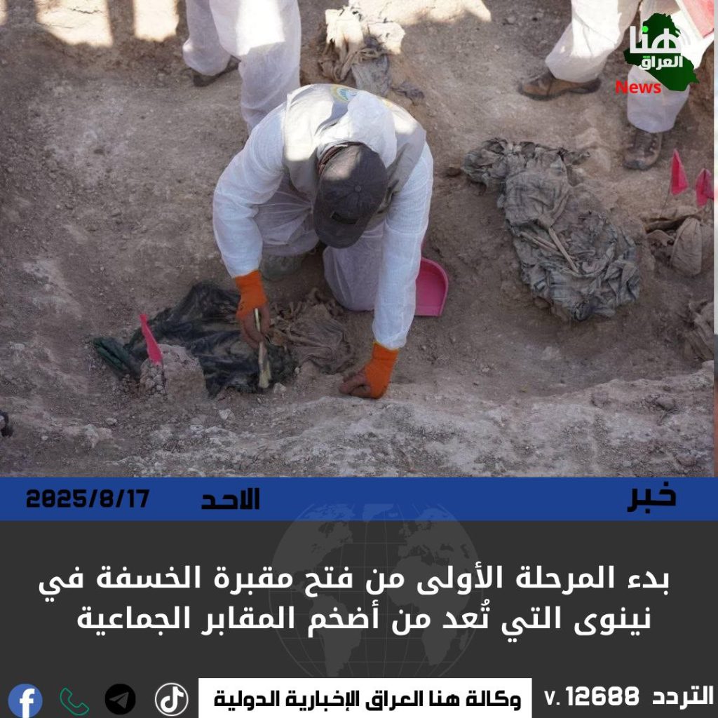 الرئيسية/صحة/بدء المرحلة الأولى من فتح مقبرة الخسفة في نينوى التي تُعد من أضخم المقابر الجماعية صحةمحلي بدء المرحلة الأولى من فتح مقبرة الخسفة في نينوى التي تُعد من أضخم المقابر الجماعية شاركها فيسبوك X لينكدإن Tumblr بينتيريست Reddit VKontakte Odnoklassniki Pocket مشاركة عبر البريد طباعة