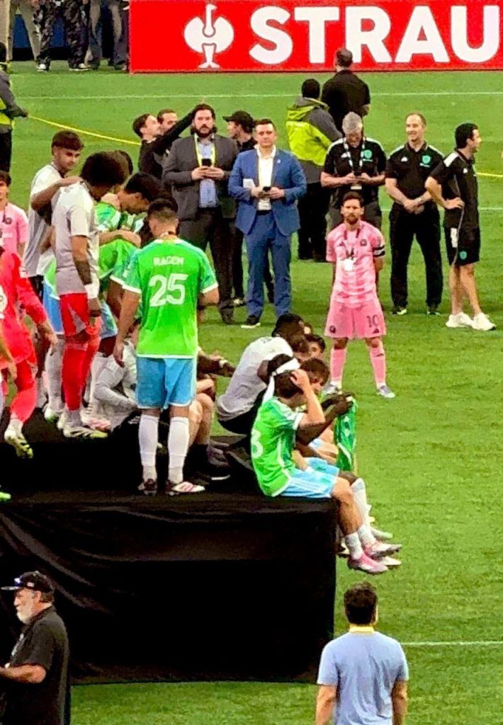 برايان شميتزر “مُدرب سياتل”: ‏لقد احتفلنا باللقب بنسبة 99% في غرفة الملابس و 1% تحدثنا عن مدى احترافية و احترام ميسي لنا .،،لقد كان اللاعب الوحيد اللذي اظهر الإحترام و لم يغادر الا بعد انتهاء مراسم التتويج