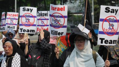 وشهدت جاكرتا مسيرات بأعلام إندونيسيا وفلسطين، في وقت سابق من مارس، وطالب المحتجون بعدم السماح بمشاركة إسرائيل.