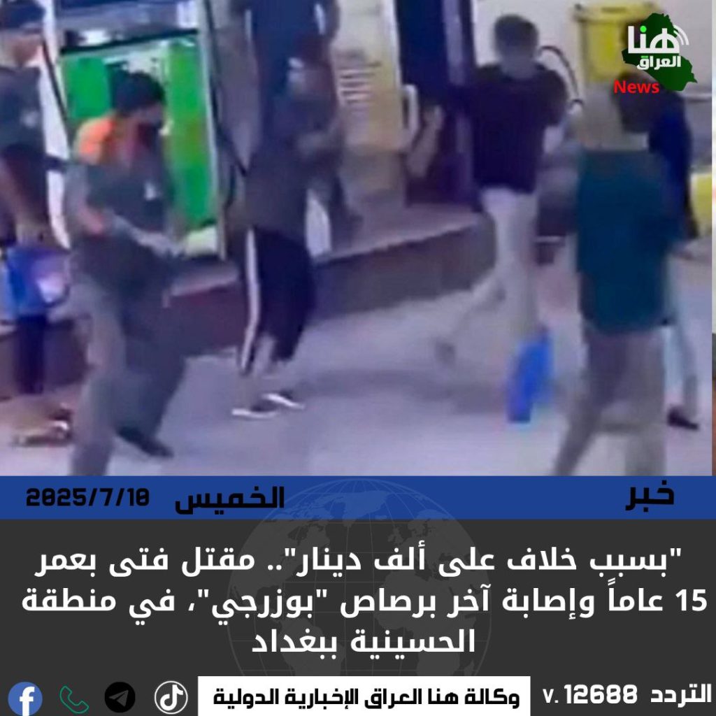 الرئيسية/امن/“بسبب خلاف على ألف دينار”.. مقتل فتى بعمر 15 عاماً وإصابة آخر برصاص “بوزرجي”، في منطقة الحسينية ببغداد. امنمحلي “بسبب خلاف على ألف دينار”.. مقتل فتى بعمر 15 عاماً وإصابة آخر برصاص “بوزرجي”، في منطقة الحسينية ببغداد. شاركها فيسبوك X لينكدإن Tumblr بينتيريست Reddit VKontakte Odnoklassniki Pocket مشاركة عبر البريد طباعة