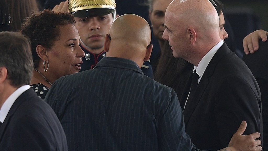 ووصل إنفانتينو إلى مدينة سانتوس في البرازيل للقيام بواجب التعزية للاعب الذي يُعتبر على نطاق واسع الأعظم على الإطلاق في تاريخ اللعبة.