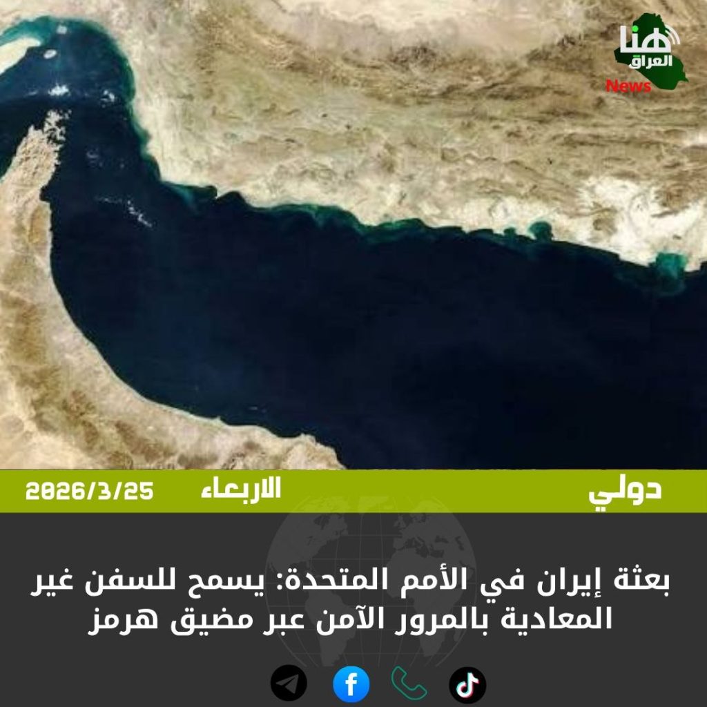 الرئيسية/دولي/بعثة إيران في الأمم المتحدة: يسمح للسفن غير المعادية بالمرور الآمن عبر مضيق هرمز دولي بعثة إيران في الأمم المتحدة: يسمح للسفن غير المعادية بالمرور الآمن عبر مضيق هرمز شاركها فيسبوك X لينكدإن Tumblr بينتيريست Reddit VKontakte Odnoklassniki Pocket مشاركة عبر البريد طباعة