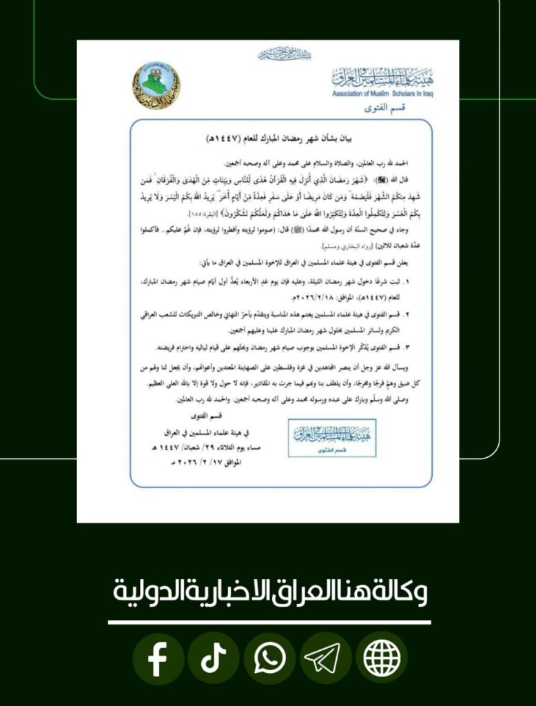 الرئيسية/محلي/بعد السعودية ..هيئة علماء المسلمين في العراق تعلن غدا الاربعاء اول ايام شهر رمضان المبارك محلي بعد السعودية ..هيئة علماء المسلمين في العراق تعلن غدا الاربعاء اول ايام شهر رمضان المبارك شاركها فيسبوك X لينكدإن Tumblr بينتيريست Reddit VKontakte Odnoklassniki Pocket مشاركة عبر البريد طباعة