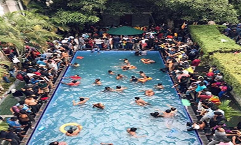 بعد فراره.. الشعب يمارس السباحة في قصر الرئيس السريلانكي!